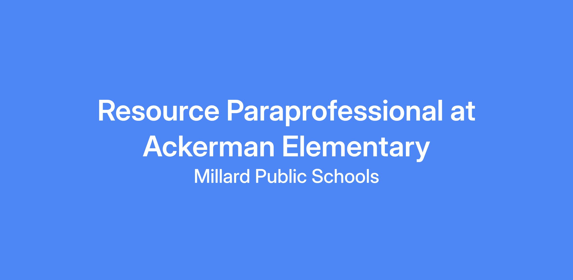 Ackerman is looking for a positive, student-centered Resource Paraprofessional to support students through targeted academic and behavioral assistance under the direction of certified staff. This role works with individual students and small groups to reinforce instruction, promote skill development, and help students access learning in a safe, supportive, and inclusive environment.