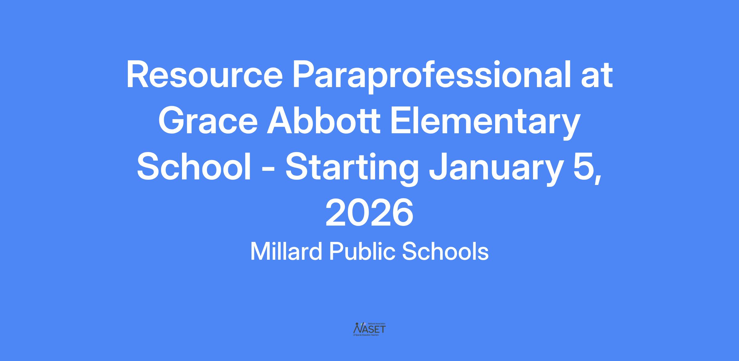 Grace Abbott Elementary School is seeking an energetic, positive, and student-centered Resource Paraprofessional to support our K-5 students in the classroom. Hours are approximately 8:20-3:00 Monday through Friday, but we can be flexible! This position would start on January 5, 2026.
