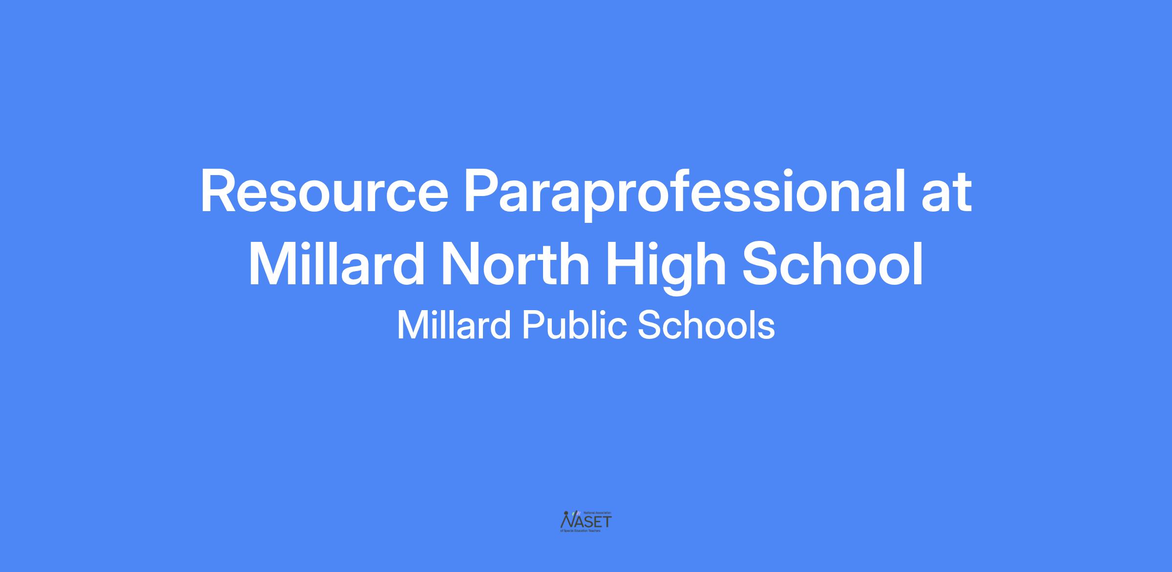 Millard North High School is seeking a full time resource paraprofessional for the 2025-26 school year.