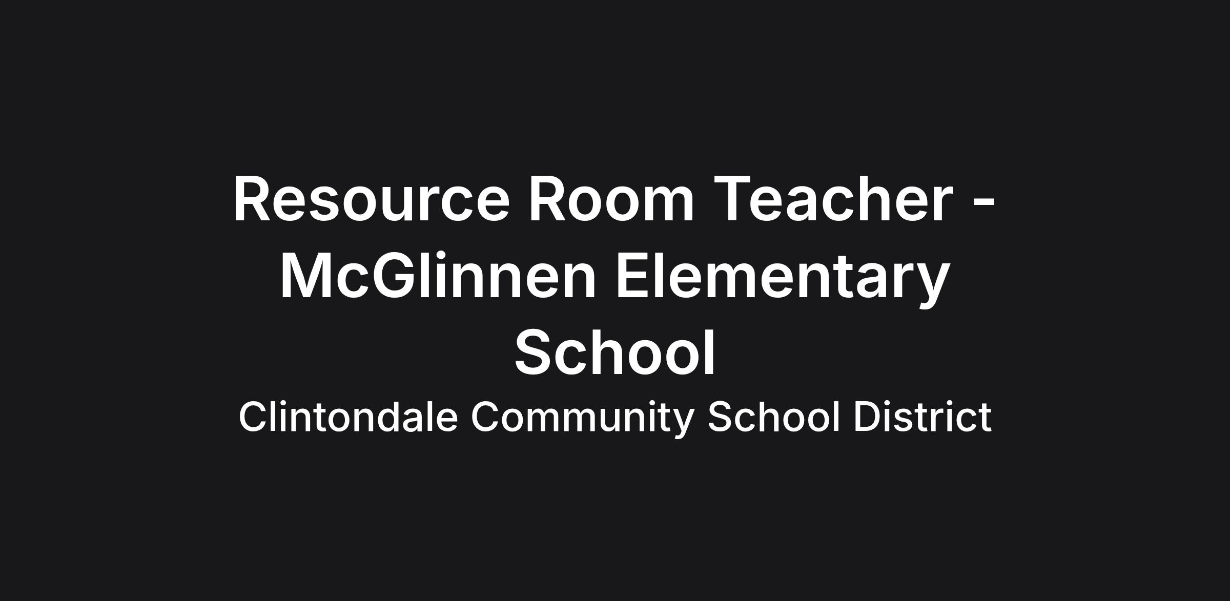 Open Position: (1) RESOURCE ROOM TEACHER – McGlinnen Elementary School