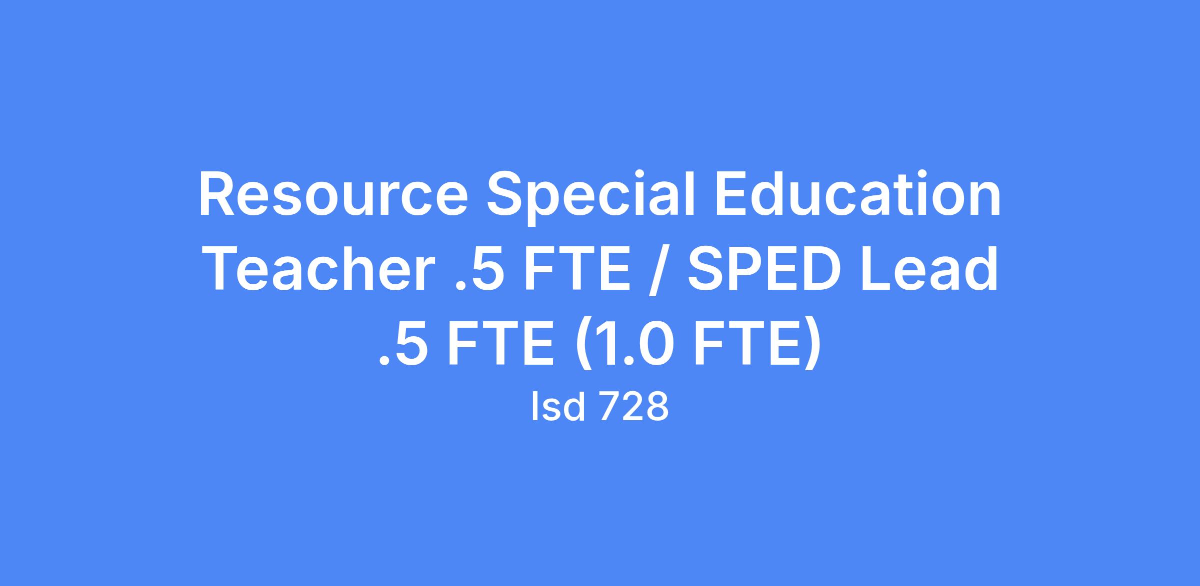 Resource Special Education Teacher .5 FTE / SPED Lead .5 FTE (1.0 FTE)