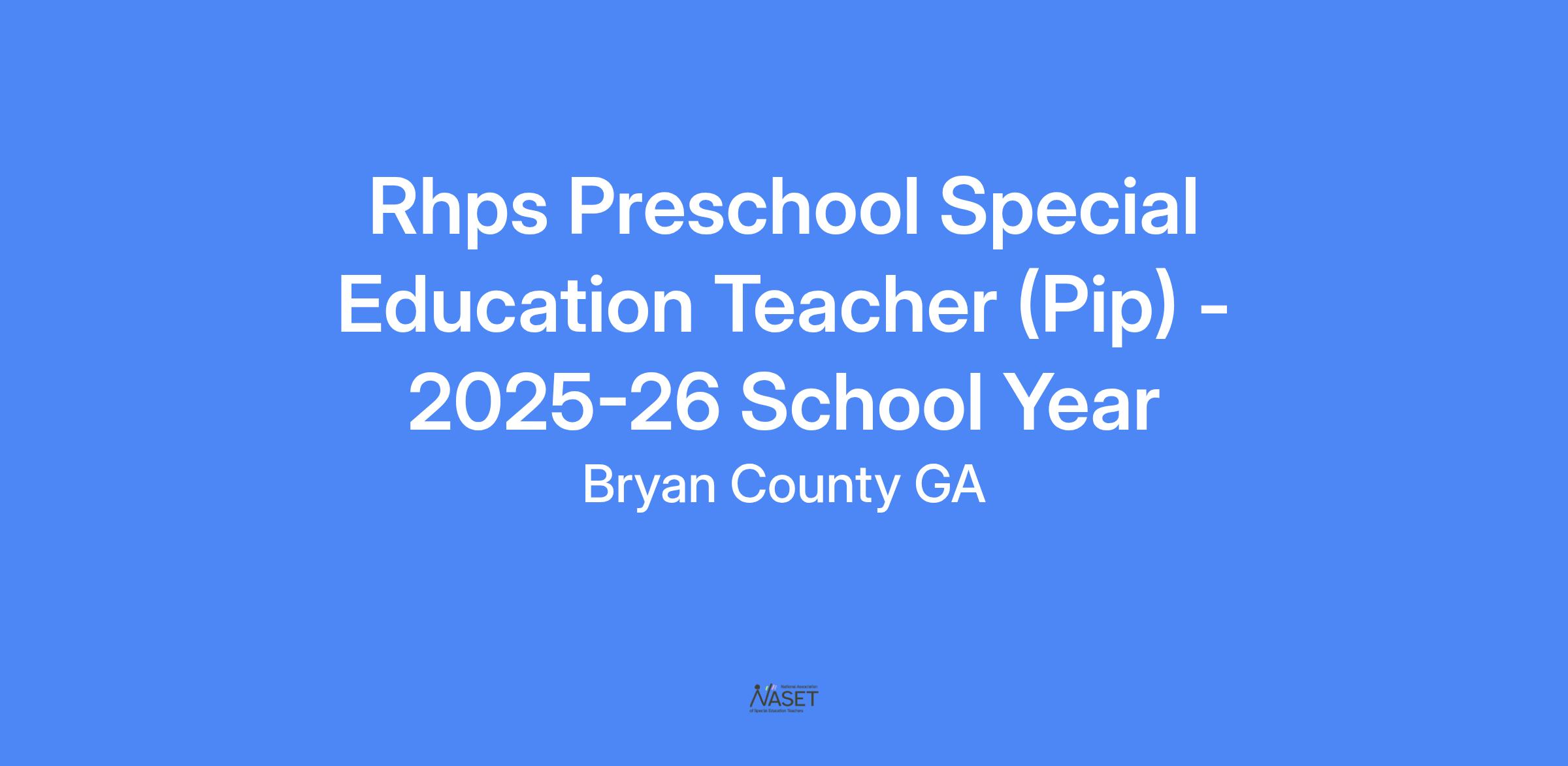 The Bryan County School System is accepting applications for a special education teacher at Richmond Hill Primary School for the 2025-26 school year. The successful candidate must meet all certification requirements in the appropriate field(s) of education (General Curriculum Special Education) and must hold Special Education content concentrations in all areas.