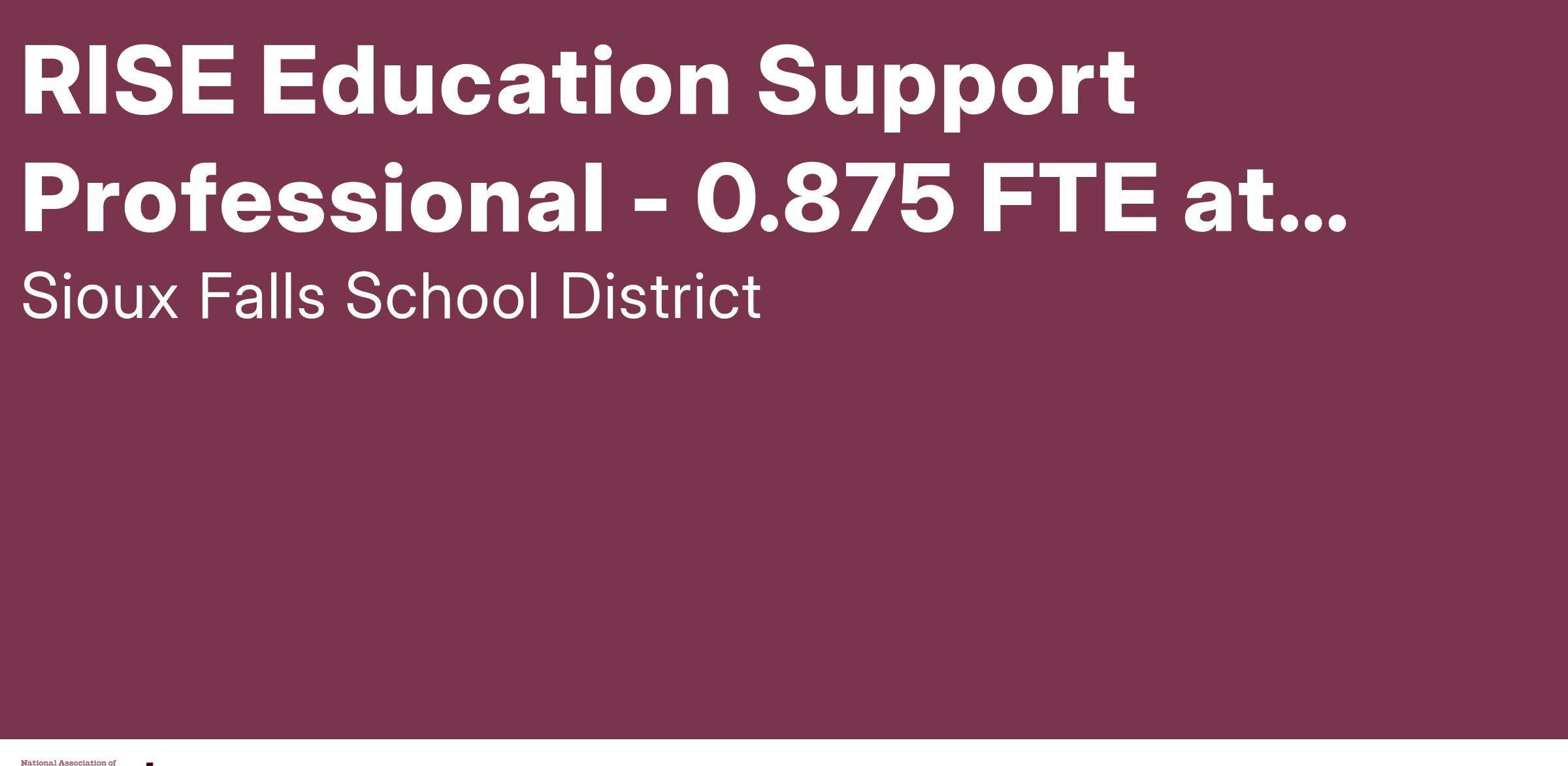Two years of post high school education or higher, or be able to pass a standardized test approved by the state of South Dakota, for designated Education Assistant positions. |
