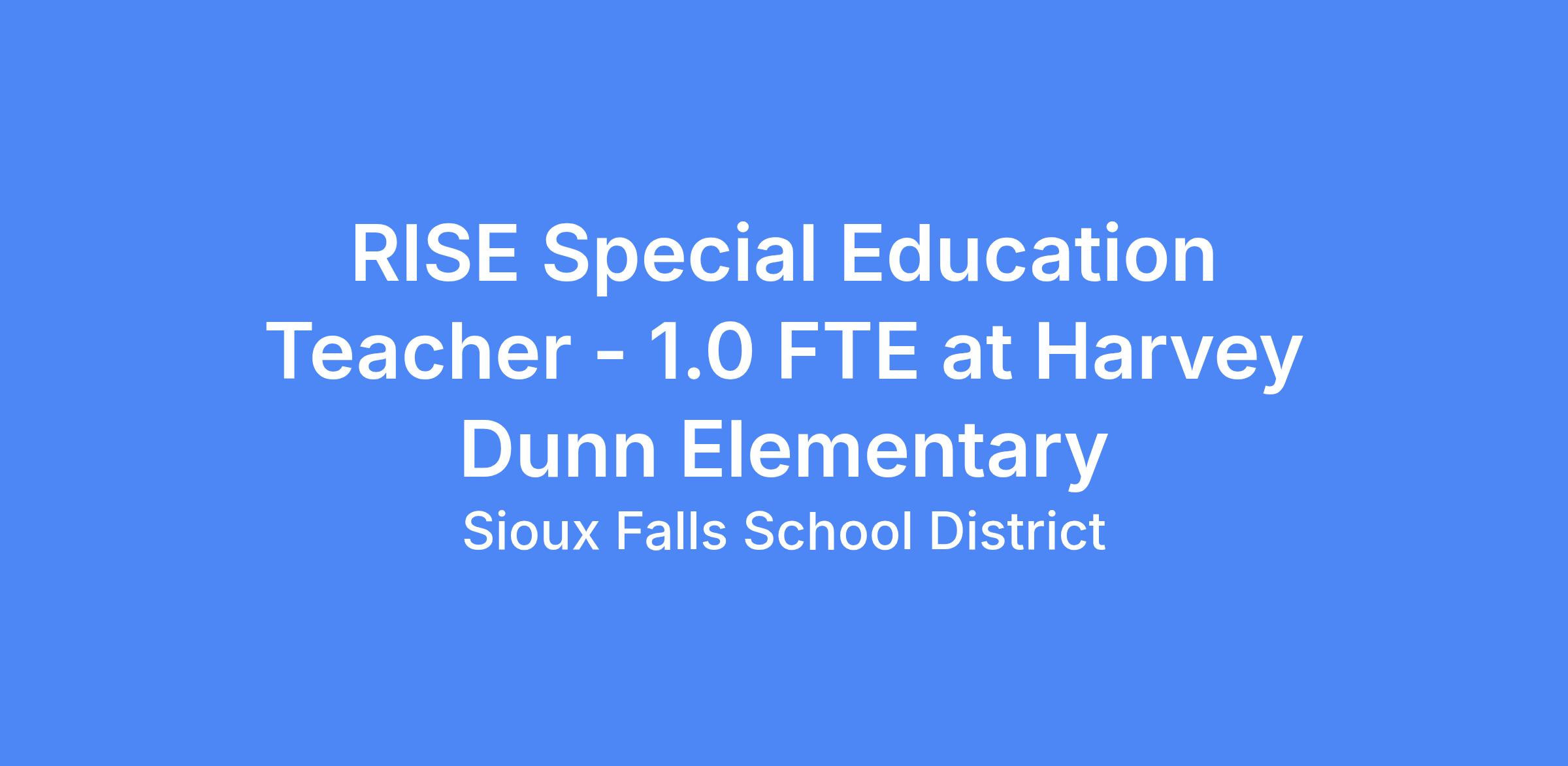 RISE Special Education Teacher - 1.0 FTE at Harvey Dunn Elementary