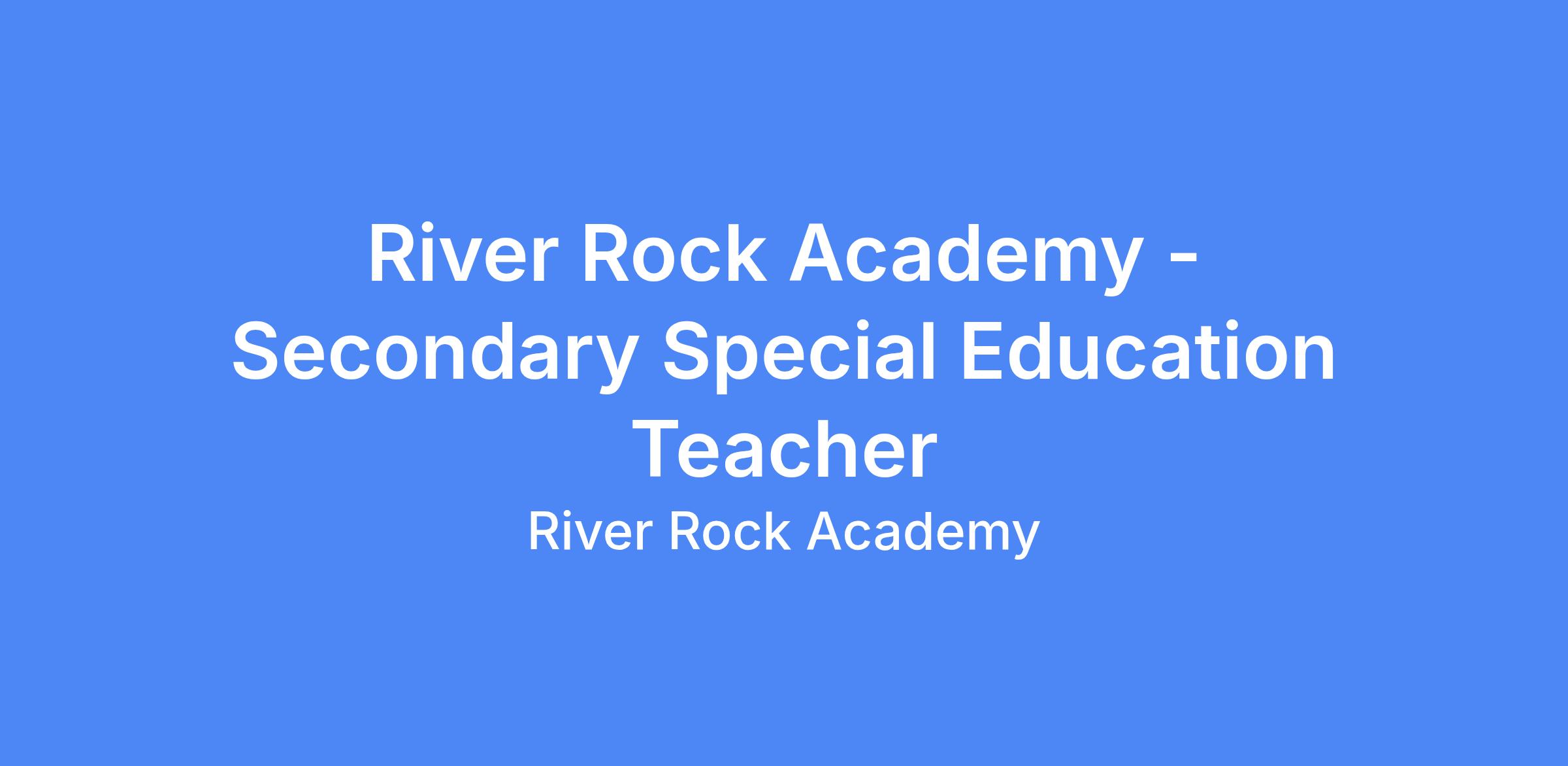 As a Secondary Special Education Teacher at River Rock Academy, you will create a supportive and engaging learning environment that encourages academic achievement and personal growth. You will design effective lessons, promote positive classroom culture, and collaborate with a committed team to help every student reach their goals.