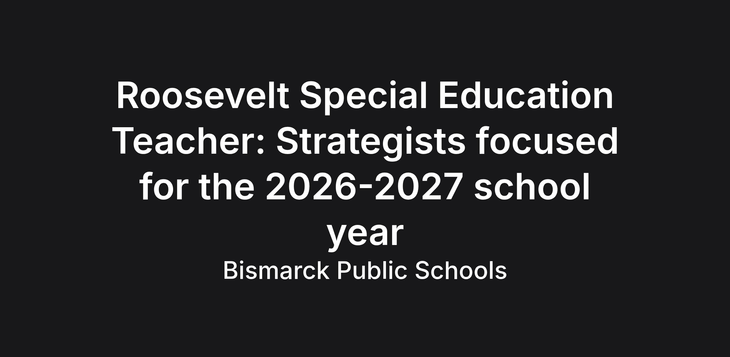 Bismarck Public Schools is accepting applications for a Special Education Teacher-Strategists focused for the 2026-2027 school year.
