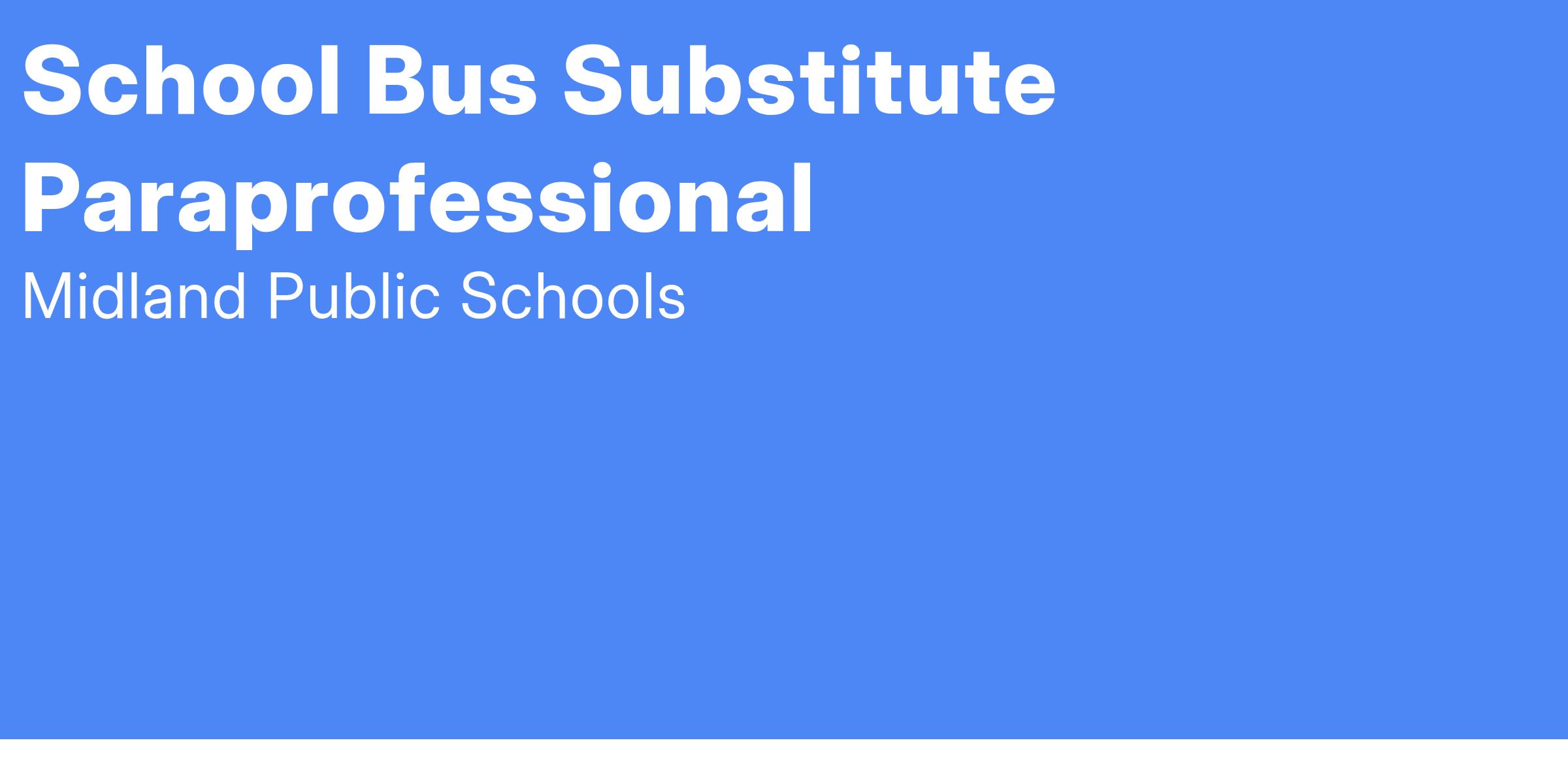 Midland Public Schools has multiple openings for Bus Substitute Paraprofessional support. Bus Substitute Paraprofessionals are contacted on an as-needed basis to cover absences reported by regular hour bus paraprofessionals.