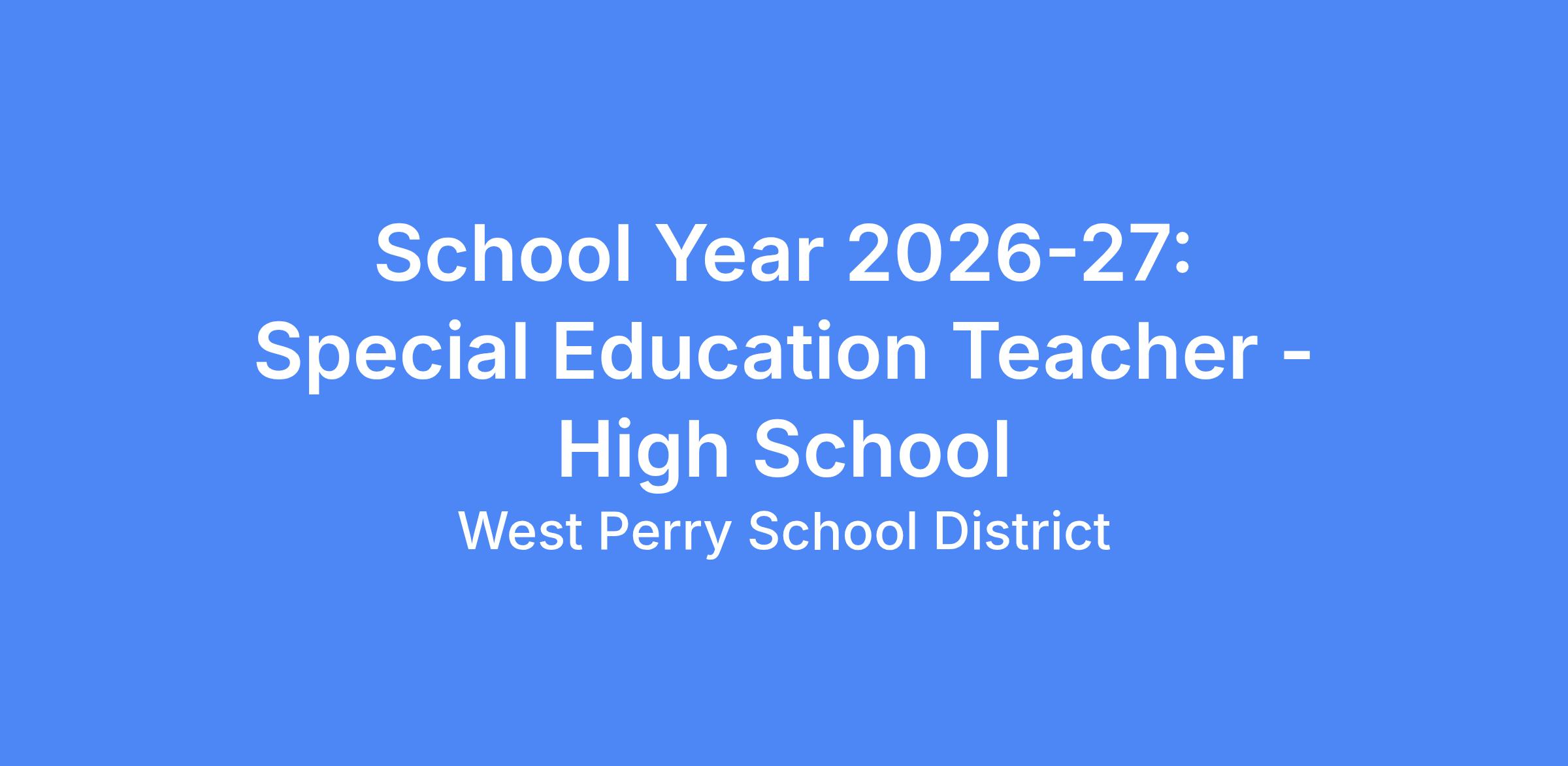 Position: Special Education Teacher