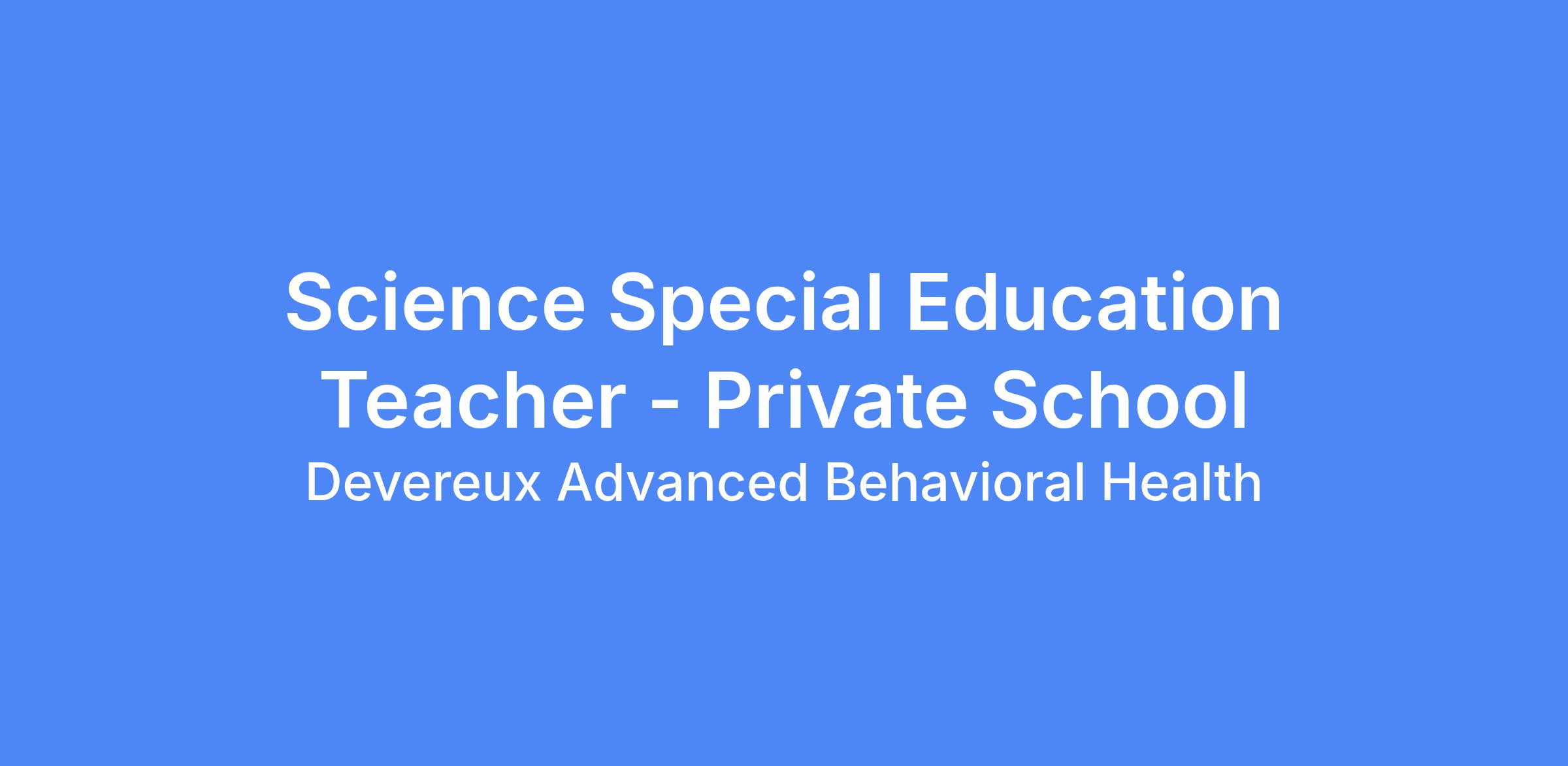 We are seeking a Special Education Teacher - Science (Grades 9-12) who is passionate about making a difference in the lives of children with learning differences and mental health/behavioral challenges.
