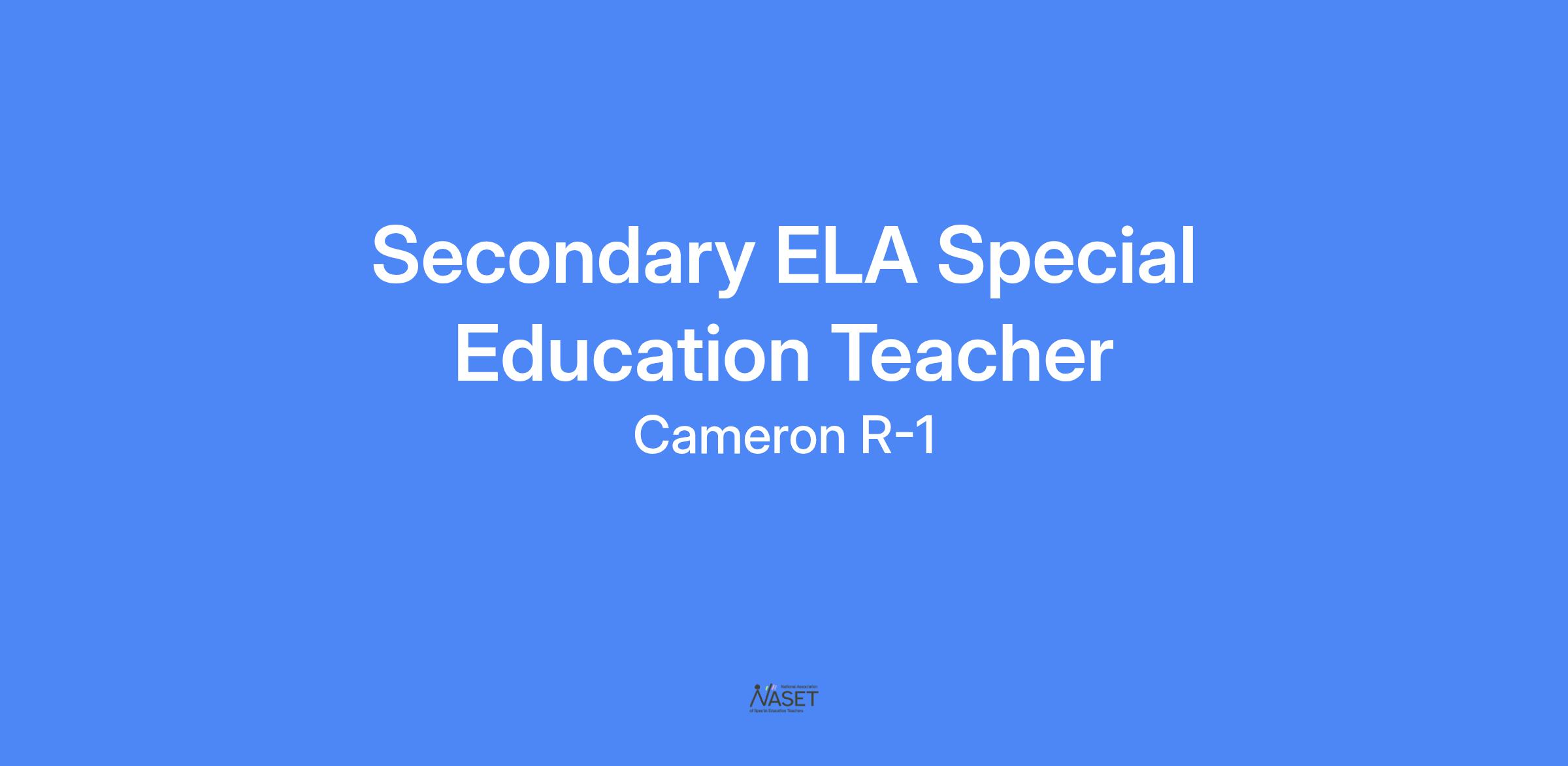 The Cameron R-1 School District is accepting applications for a Secondary Special Education Teacher (6th-8th Grade Middle School ELA) for the 2026-2027 school year. Primary responsibilities will be to provide instruction and a learning environment that will enable each student to increase skills appropriate to age, grade level, and individual capacity. The teacher will be responsible to plan and implement daily instruction to assigned students, work on a team with other teachers, communicate effectively with students, staff and parents, complete special education paperwork, hold IEP meetings, and complete other duties as assigned. It is preferred that desired applicants hold a valid Missouri teaching certificate in special education.