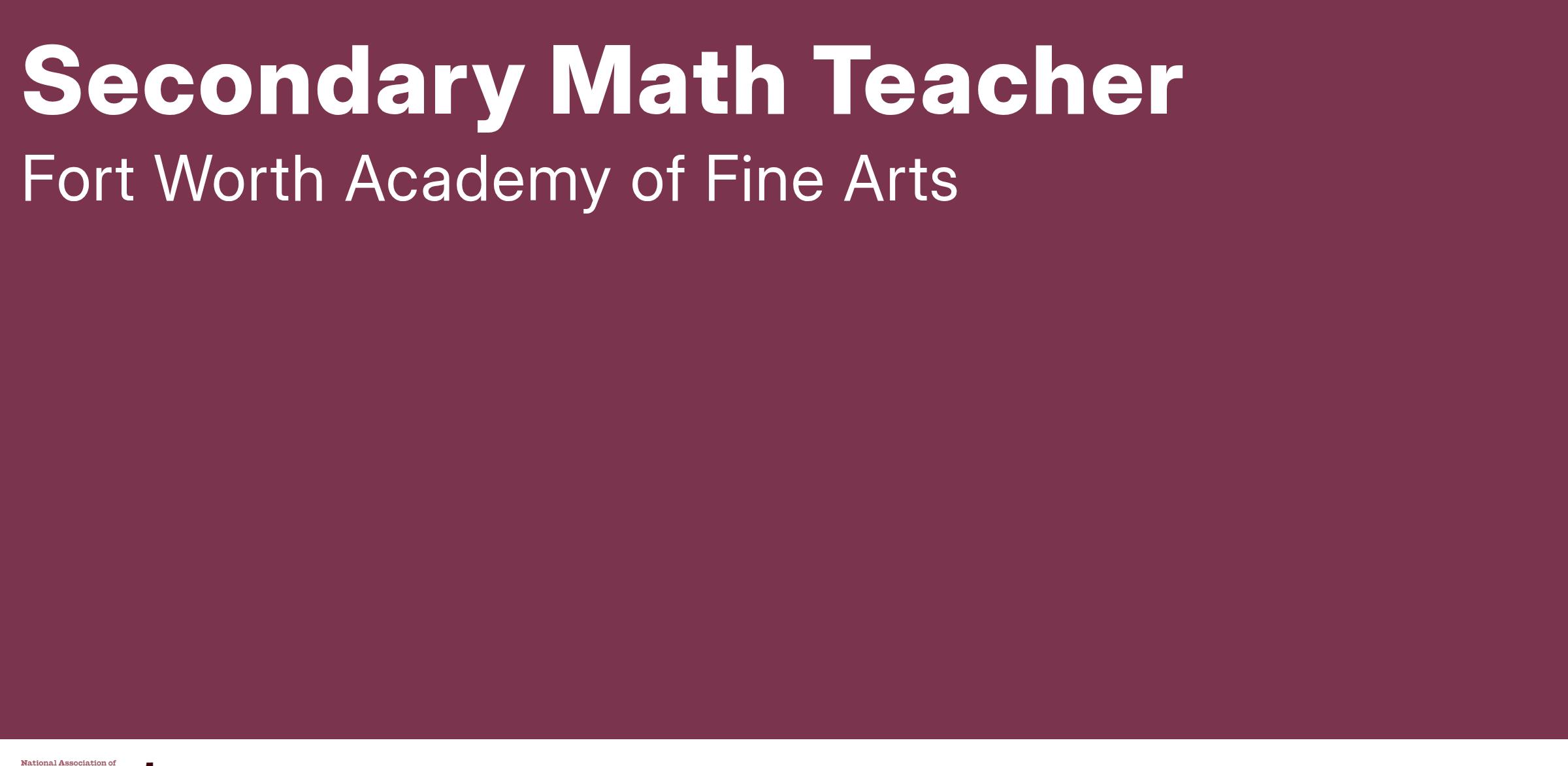 Position Summary: The Teacher (3-12) is responsible for providing the highest quality classroom instruction in the subject area at the grade level assigned for our students. Fort Worth Academy of Fine Arts (FWAFA) teachers provide students with appropriate educational activities and experiences that will enable them to fulfill their potential for intellectual, emotional, physical, and social growth. In collaboration with other faculty and administration, the Teacher will support the School’s mission through curriculum development and instruction in alignment with the Texas Essential Knowledge and Skills (TEKS), the National Core Art Standards, and the standards required for Advanced Placement coursework.