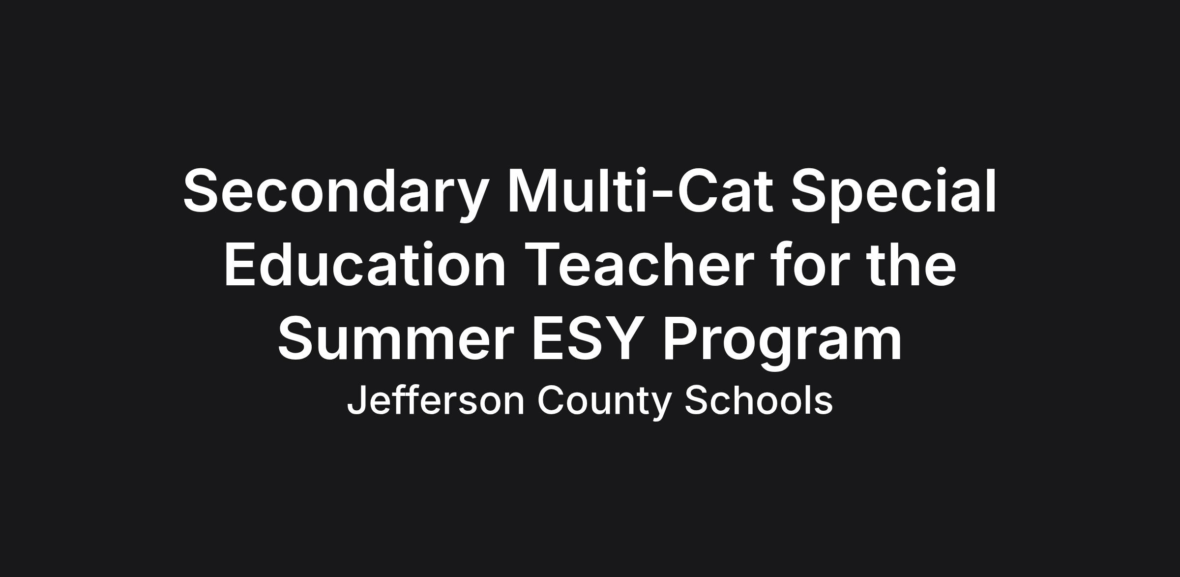 POSITION: Secondary Multi-Cat Special Education Teacher for the Summer ESY Program