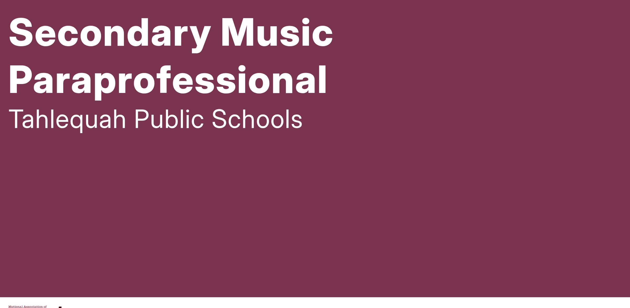 JOB TITLE: Secondary Music Paraprofessional