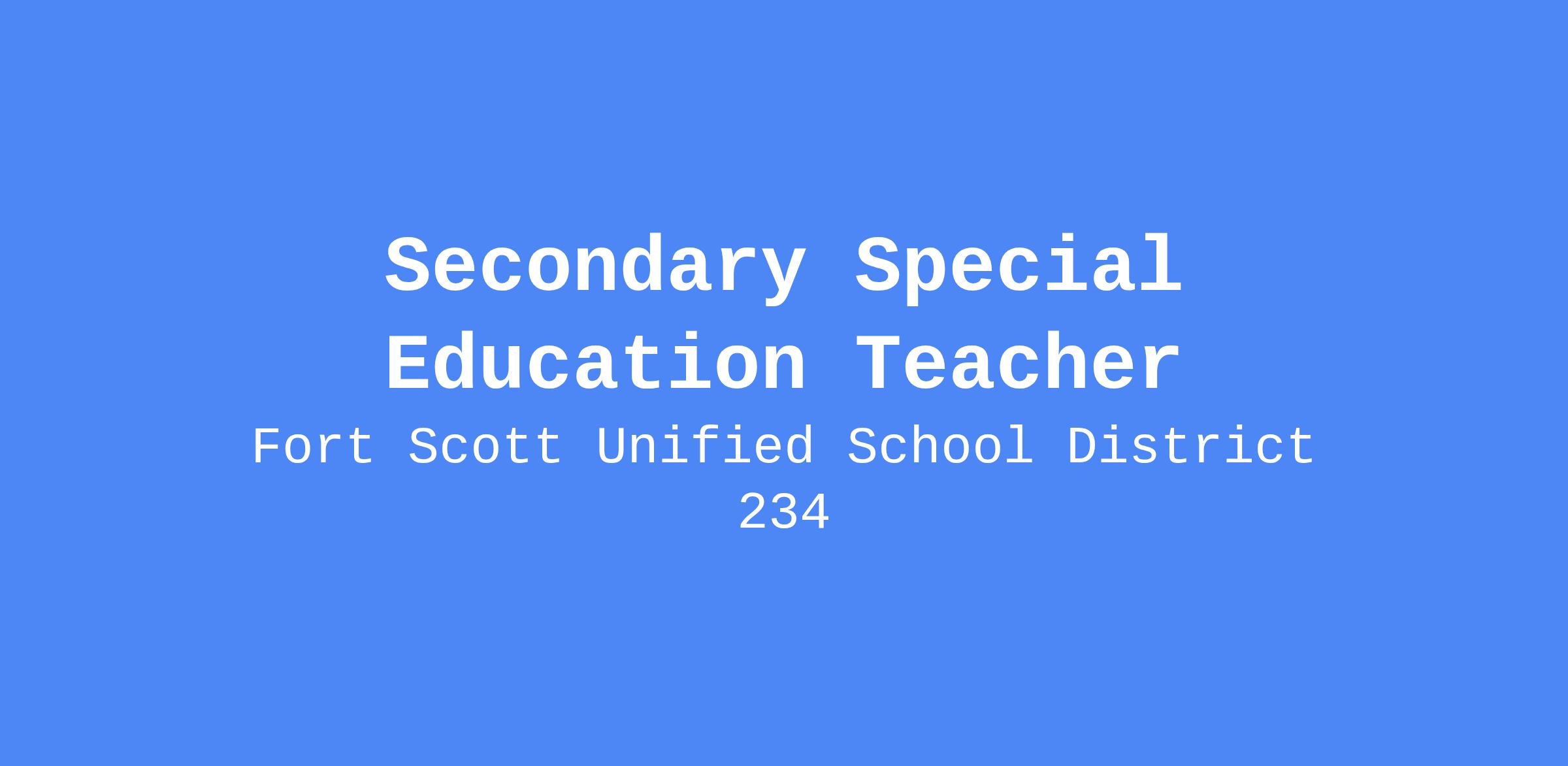 Successful candidates for this position will have a commitment to helping all students succeed at academics and social interactions with peers and adults. This position involves working with students across a wide variety of abilities at high school level. Fort Scott USD 234 is a progressive and child-centered local education agency, with an emphasis on family