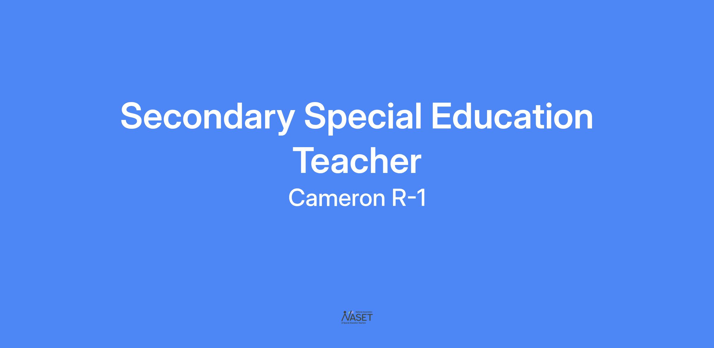 The Cameron R-1 School District is accepting applications for a Secondary Special Education Teacher (6th-8th Grade Middle School ELA) for the 2025-2026 school year. Primary responsibilities will be to provide instruction and a learning environment that will enable each student to increase skills appropriate to age, grade level, and individual capacity. The teacher will be responsible to plan and implement daily instruction to assigned students, work on a team with other teachers, communicate effectively with students, staff and parents, complete special education paperwork, hold IEP meetings, and complete other duties as assigned. It is preferred that desired applicants hold a valid Missouri teaching certificate in special education.