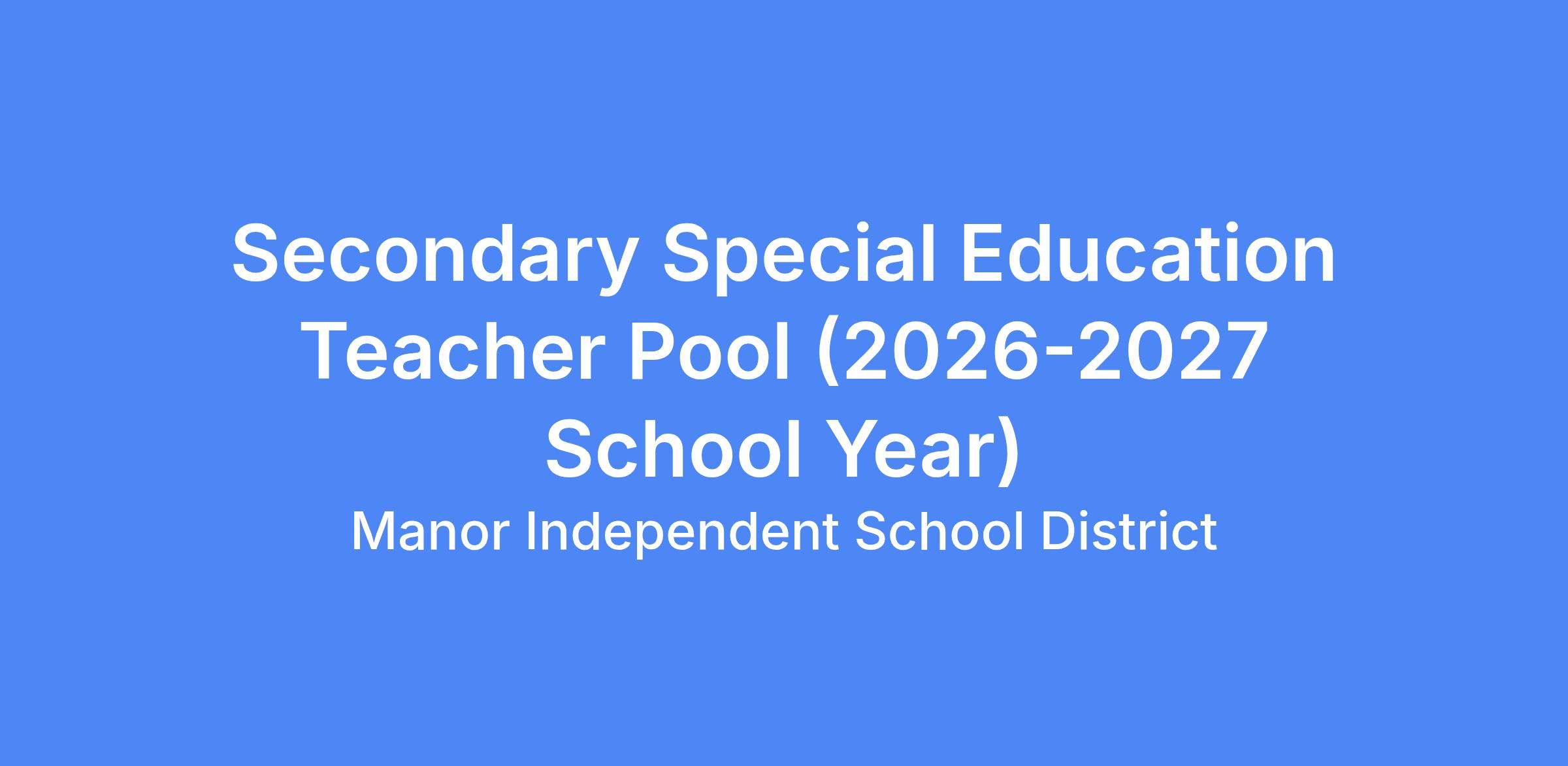 Secondary Special Education Teacher Pool (2026-2027 School Year)