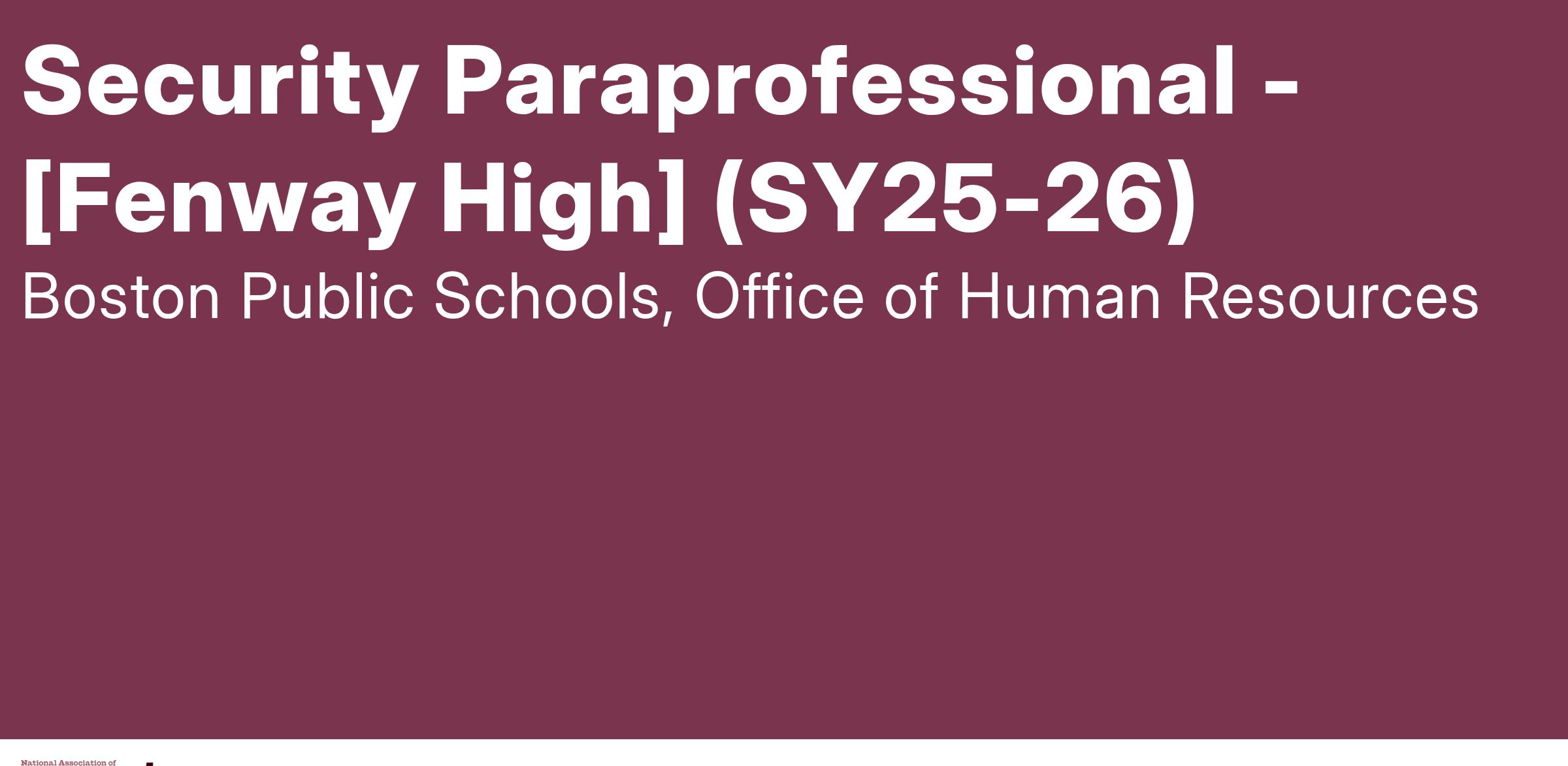Security Paraprofessional will assist teachers in providing an innovative, high quality education program designed to meet the needs of the children in the Boston Public Schools. Security Paraprofessional will work with school staff to create an educational environment in which quality and continuity are key factors in educating the students of the Boston Public Schools.