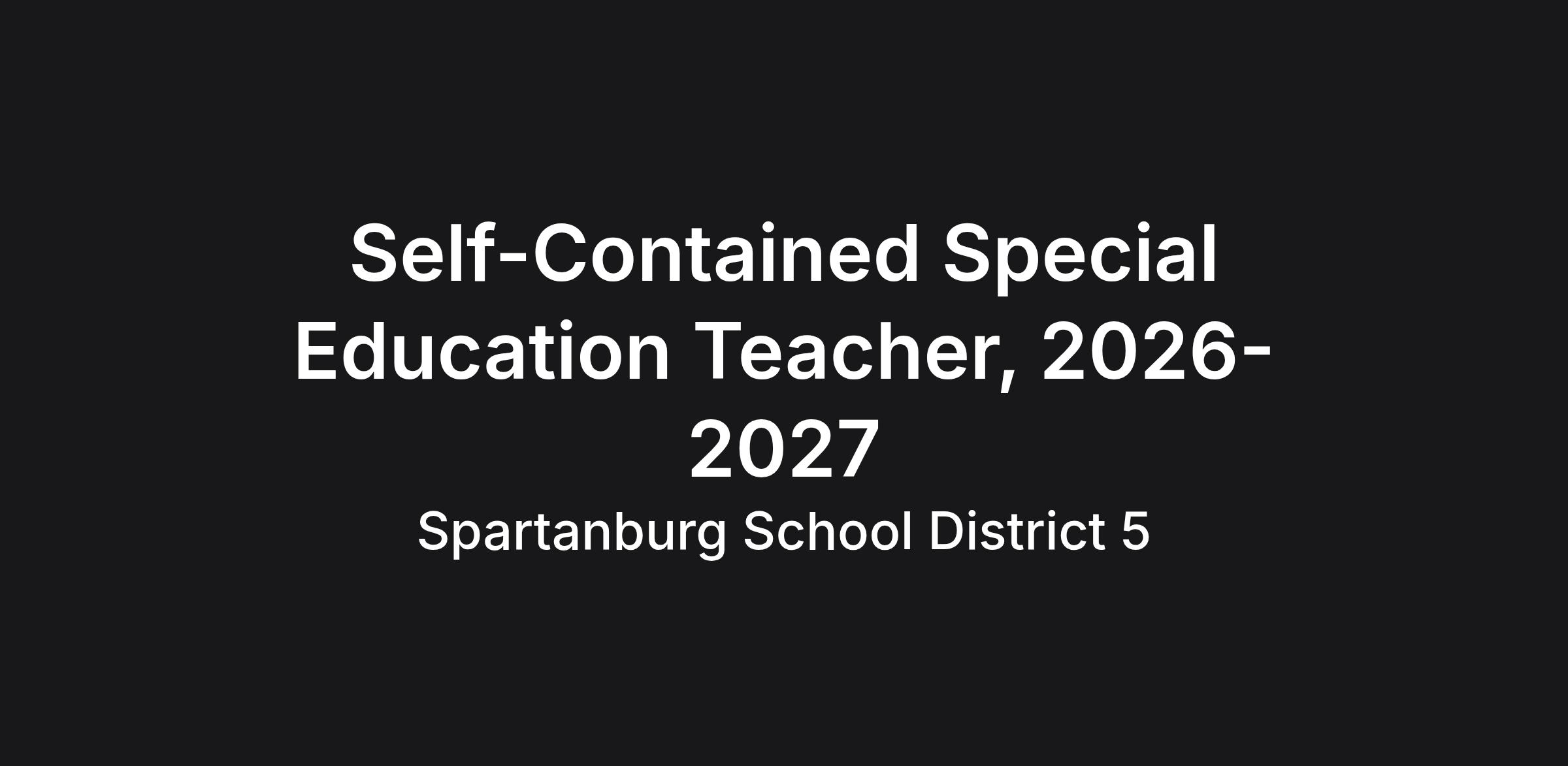 POSITION: Self-Contained Special Education Teacher, 2026-2027