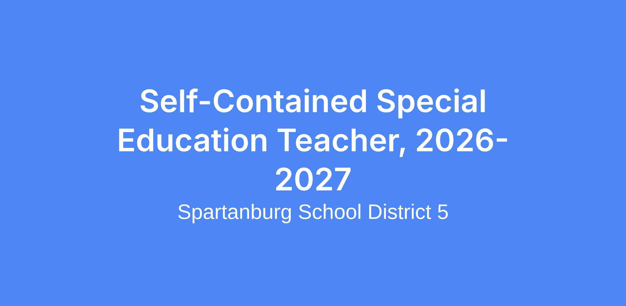 POSITION: Self-Contained Special Education Teacher, 2026-2027