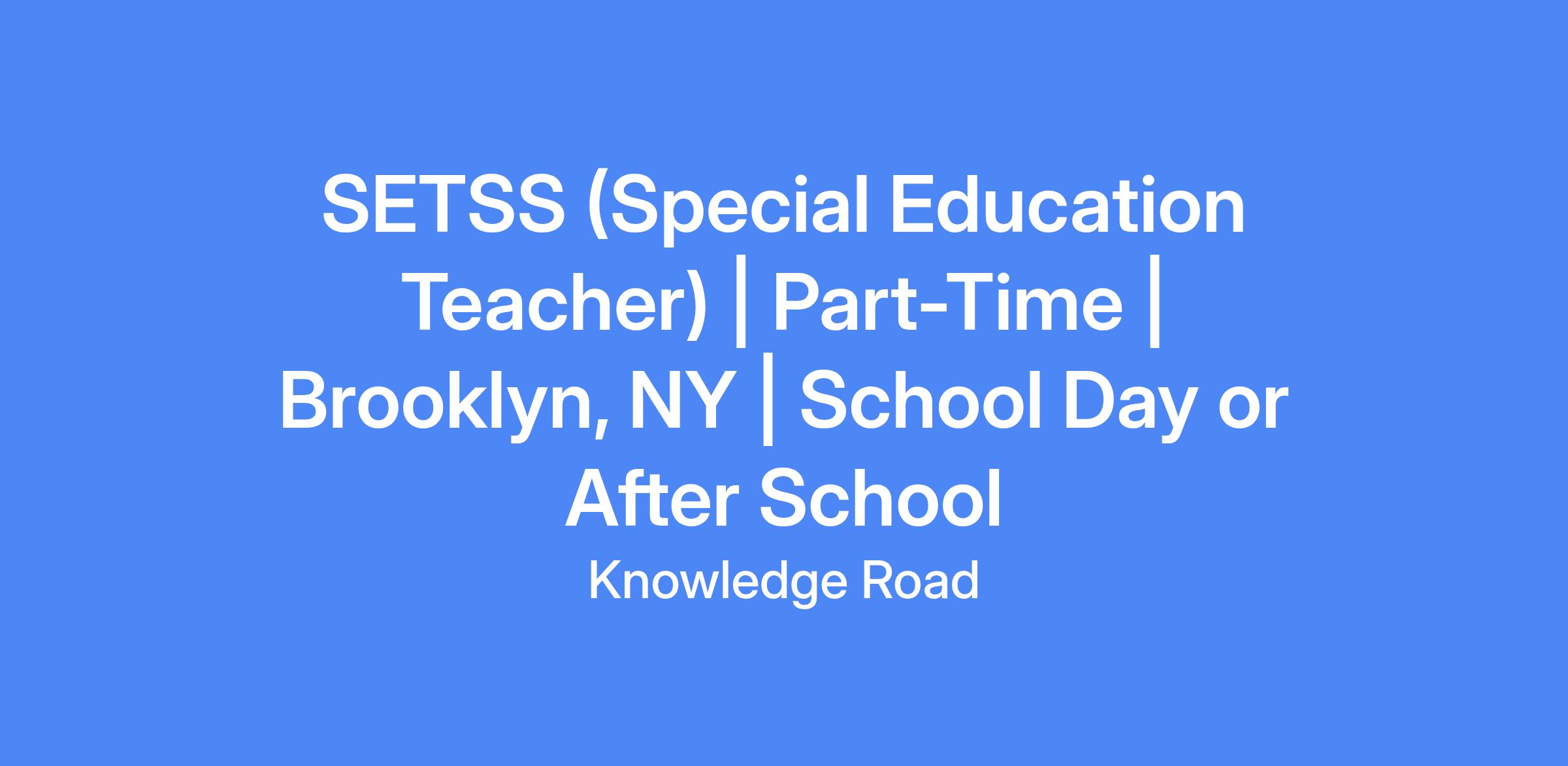SETSS (Special Education Teacher) | Part-Time | Brooklyn, NY | School Day or After School