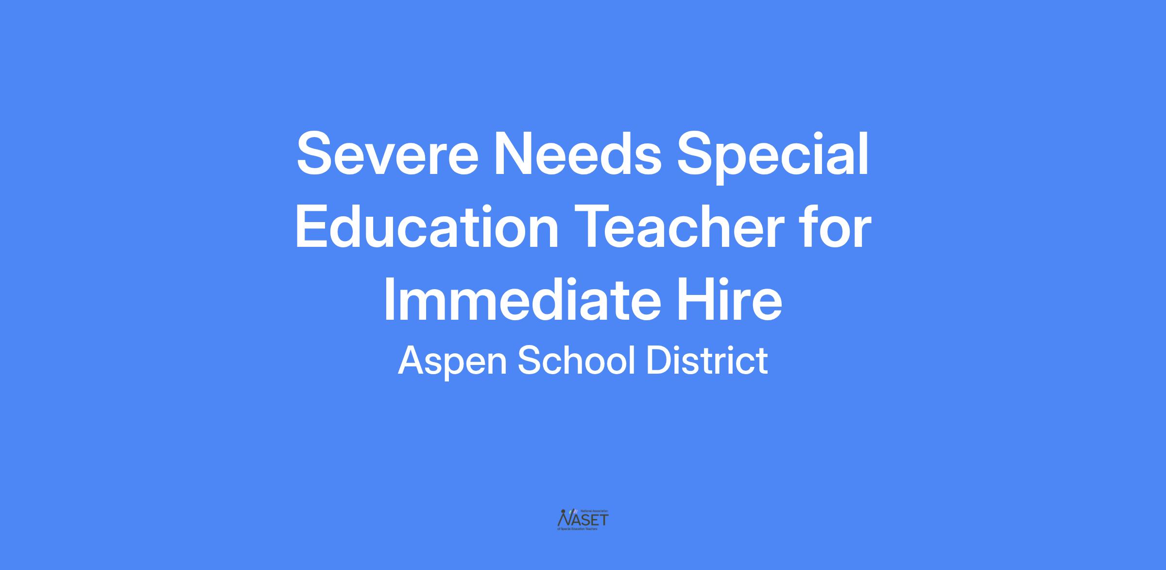 Aspen School District seeks a Special Education Teacher at the Aspen Elementary School for Immediate Hire.