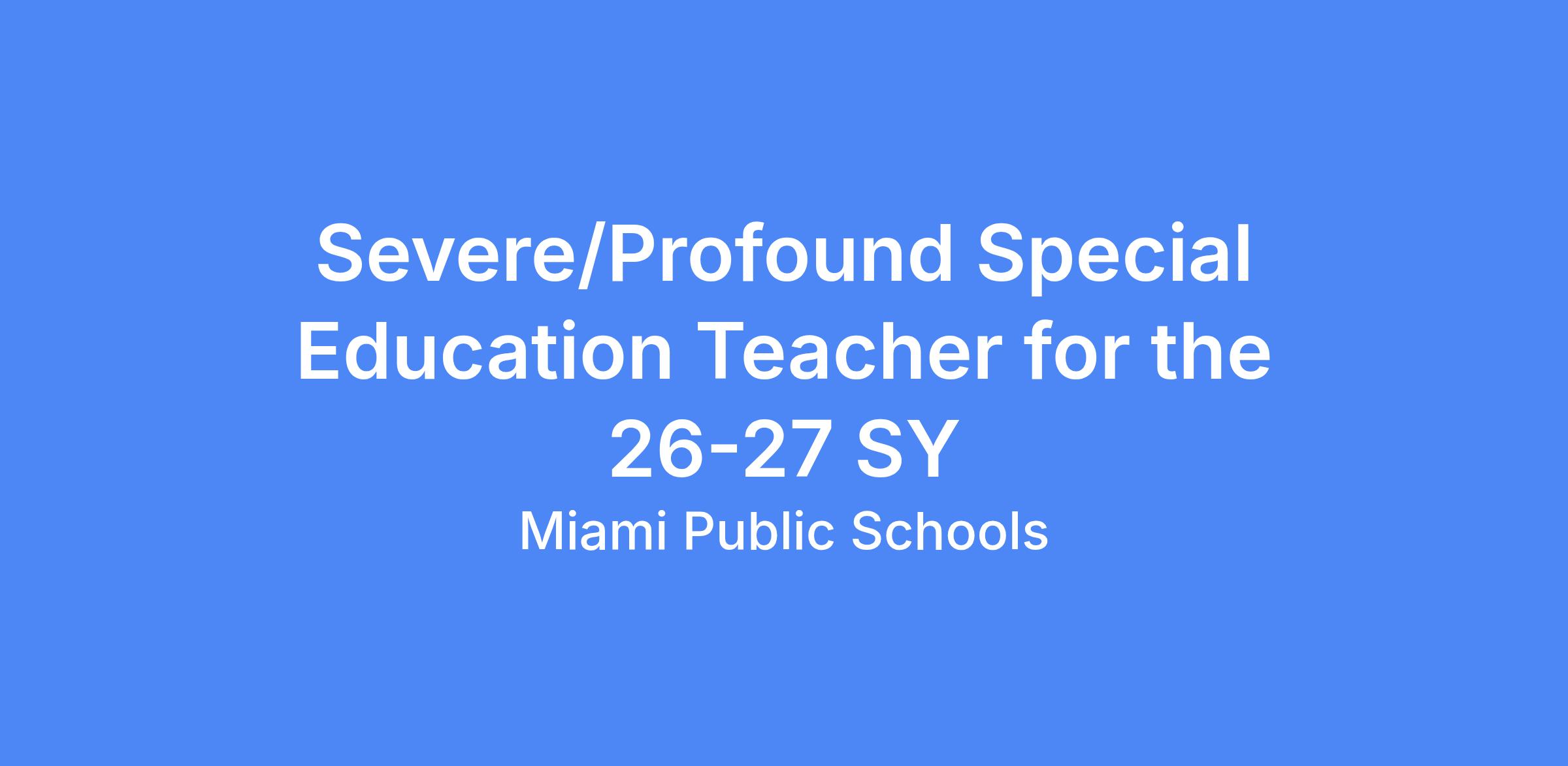Miami Public Schools is accepting applications for a Severe/Profound Special Education Teacher for the 26-27 SY