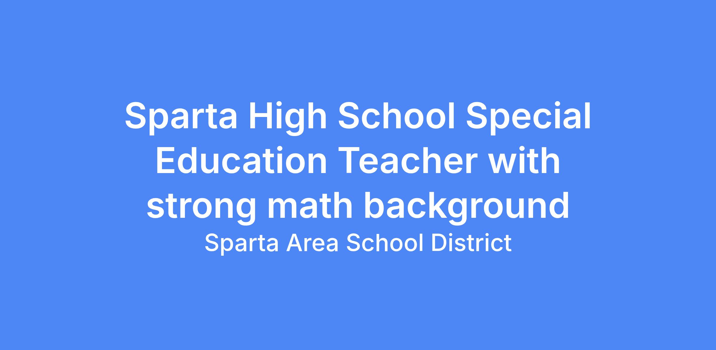 Sparta High School is seeking a dedicated, student-centered High School Special Education Teacher with a strong background in mathematics instruction. The successful candidate will demonstrate solid proficiency through Algebra II and a commitment to supporting students with diverse learning needs across both special education and general education environments.