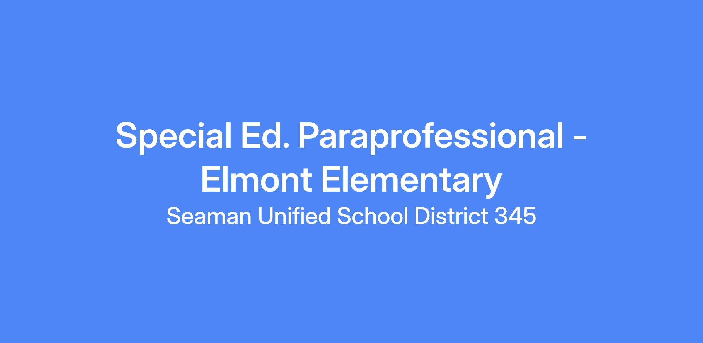Seaman USD #345 has an opening for a Special Education paraprofessional at Elmont Elementary. This is a 6.5 hour per day position during the school year.