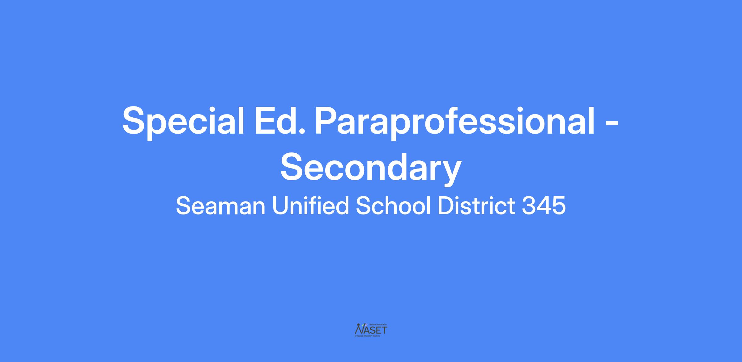 Seaman USD #345 has an opening for a Special Education paraprofessional at Seaman Middle School. This is a 7 hour per day position during the school year. This posiition is our Multi-Level Special Education Classroom working with a small group of students with cognitive, autism, and/or multi-level disabilities.