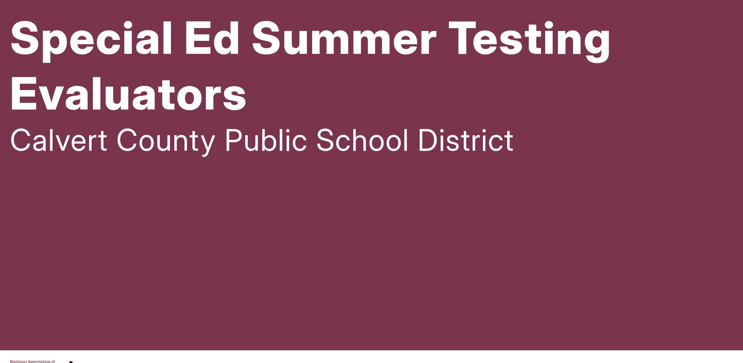 POSITION: Summer Testing Evaluators – Teachers and Related Service Providers: