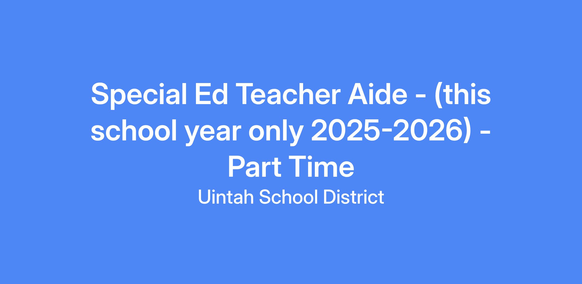 PT SPECIAL EDUCATION TEACHER AIDE (LIFE SKILLS CLASSROOM) ~ EAGLE VIEW ELEMENTARY