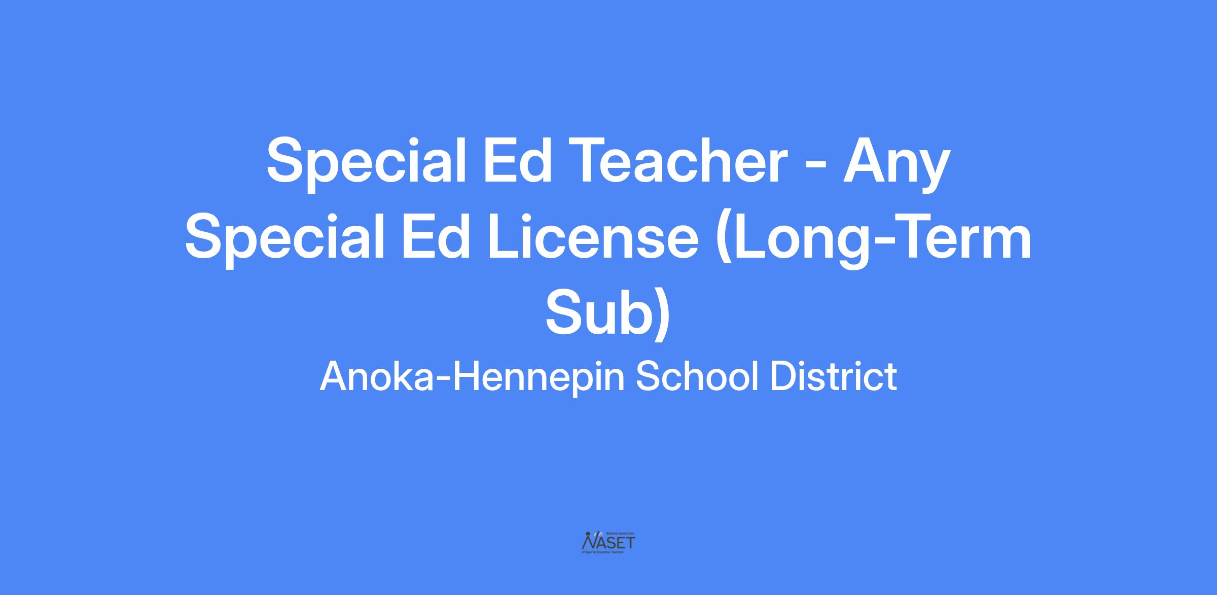 Minimum Qualifications: Requires Any Special Ed License. (Anoka-Hennepin will make every effort to hire teachers with full standard licenses in the assigned subject and grade level.)