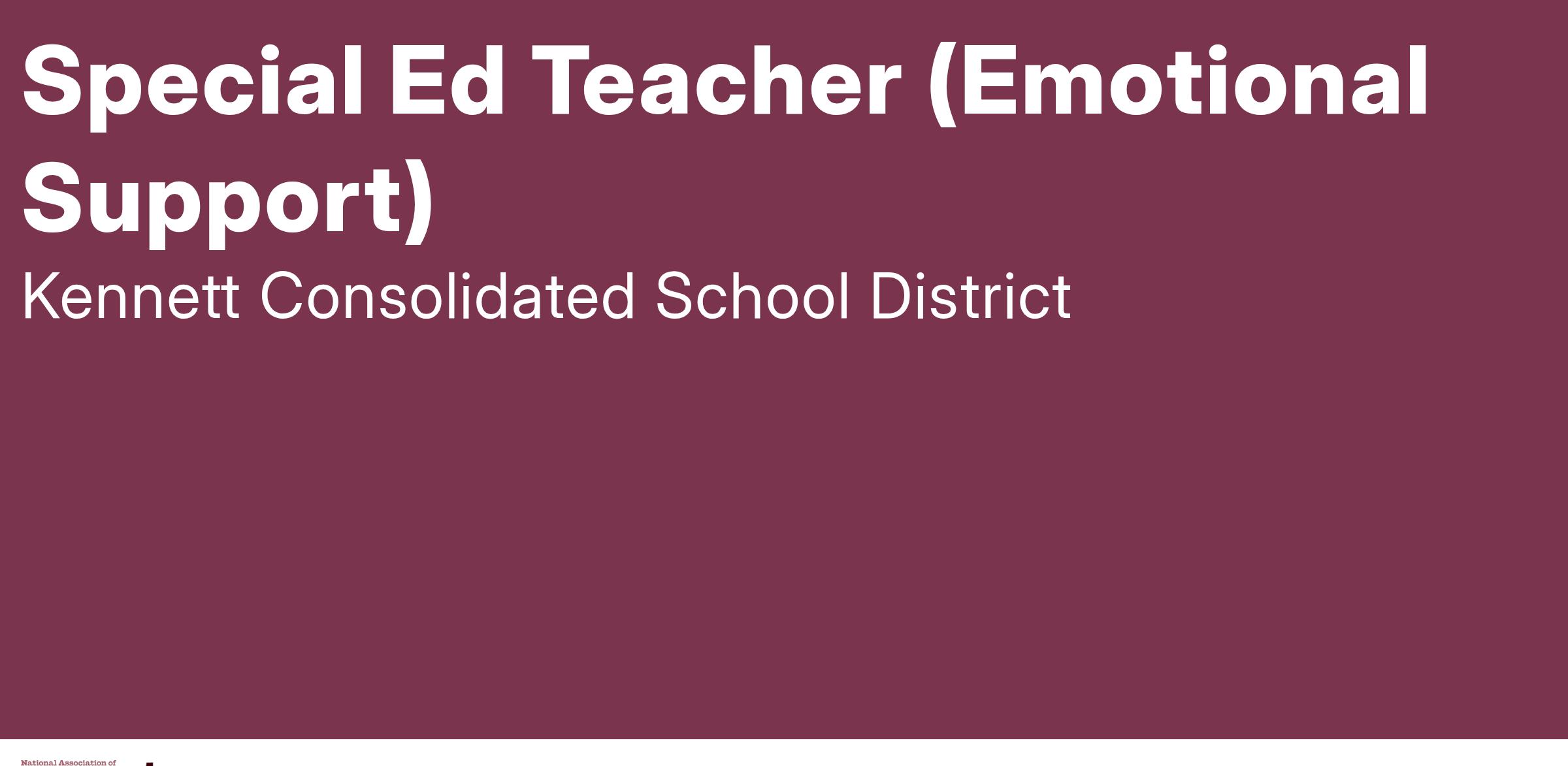 Kennett Consolidated School District is seeking a dynamic teacher who will nurture, prepare, and empower ALL students and staff to succeed in their academic, social, and emotional journey. The ideal candidate is an engaging, creative, patient, teacher to work in our special education program. A teacher who exhibits a belief in the importance of relationships and resiliency through a student-centered approach will be able to successfully support the district’s mission and vision.