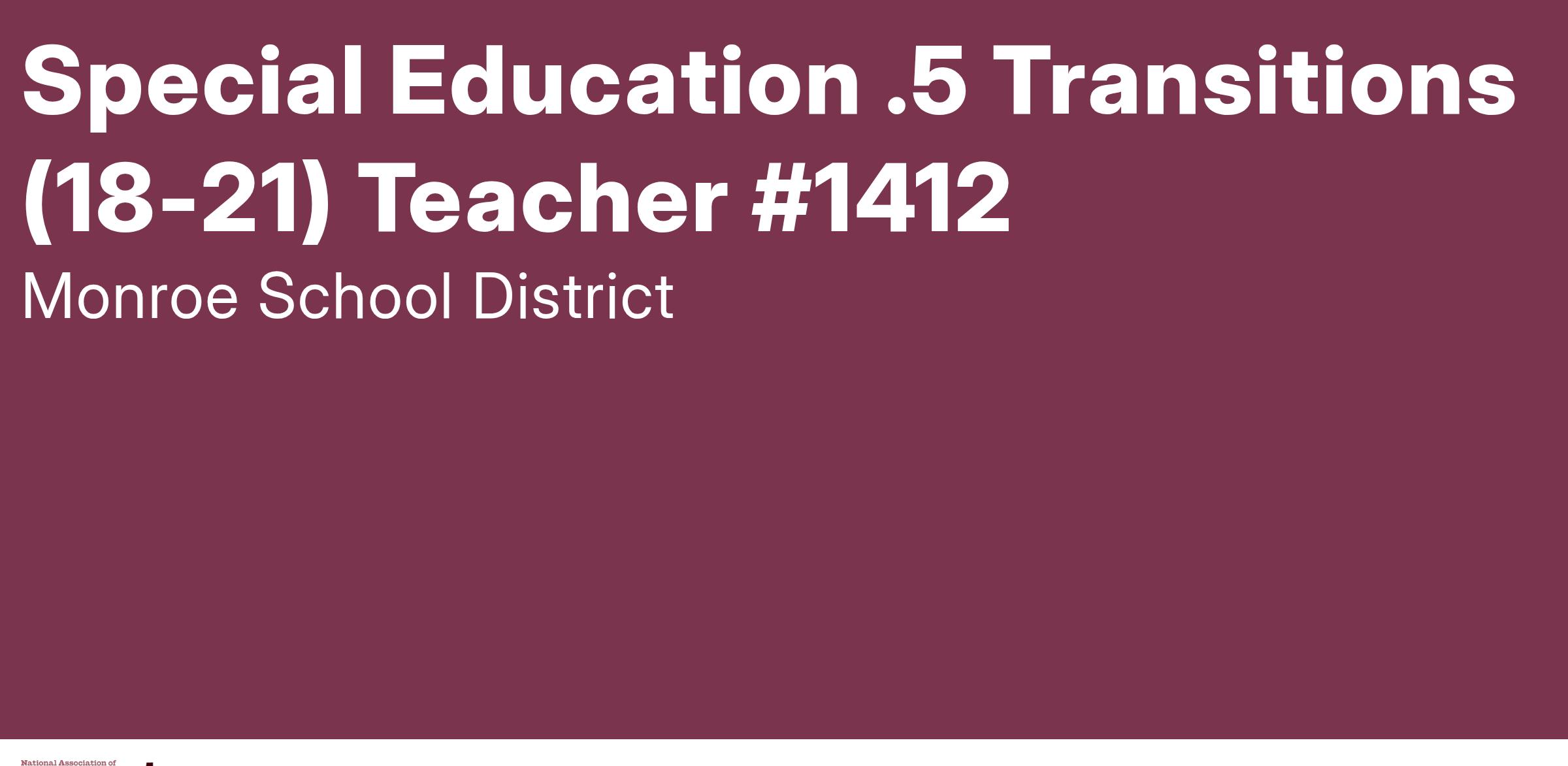 This position is that of classroom teacher and is represented by the Monroe Education Association collective bargaining unit. The position will work a schedule in coordination with the District student calendar. Salary and benefits as determined by the current collective bargaining agreement. Employee is required to complete all mandatory district trainings.