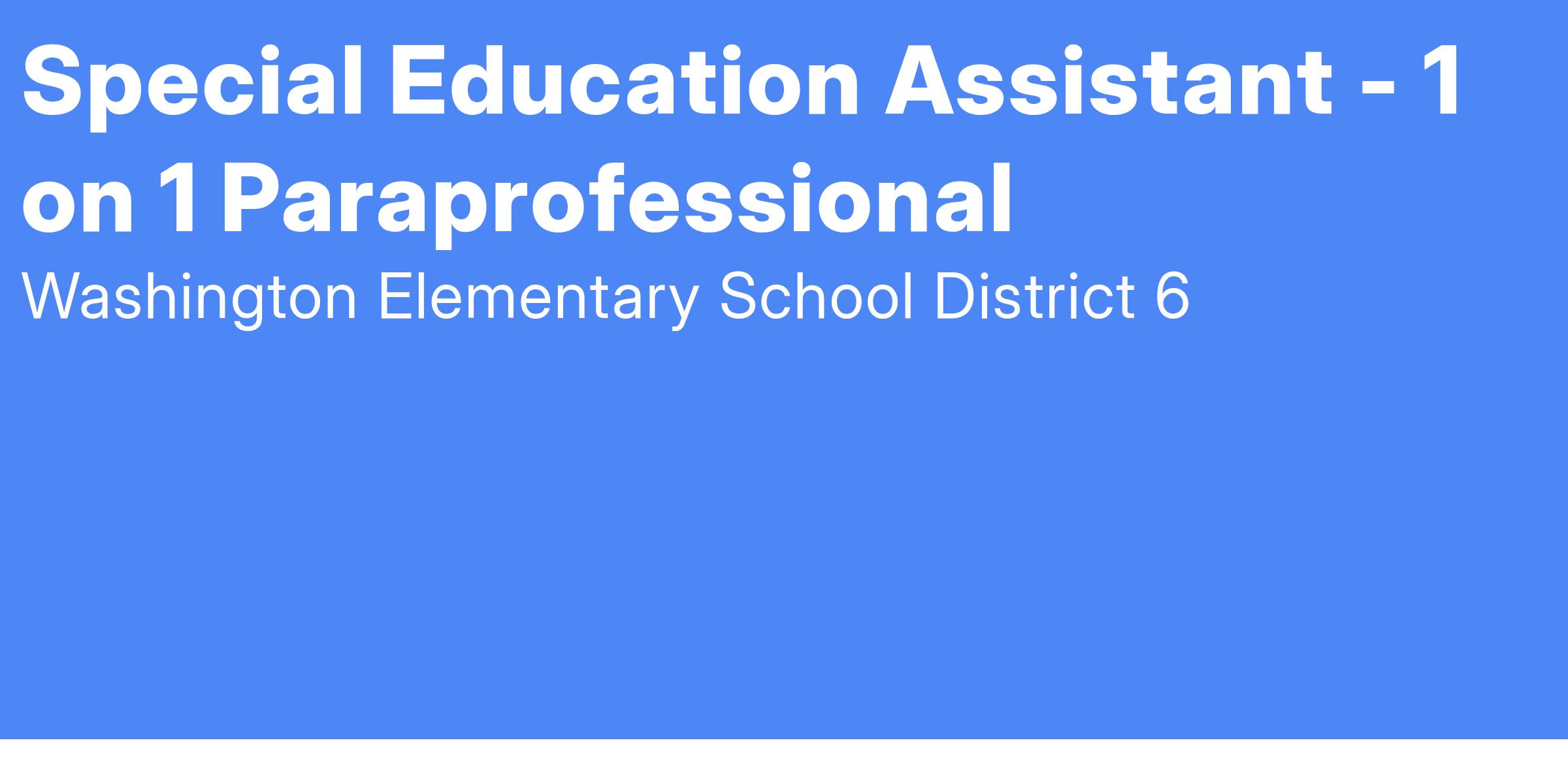Summary: Under direct supervision, incumbent(s) provides assistance to teachers in a diverse classroom environment by providing materials and handouts to special education students, working with special needs students individually or in groups on special projects or assignments, demonstrating skills and techniques, communicating with parents regarding specific concerns, providing input to lesson plans and daily activities, photocopying materials and preparing classrooms for various activities. In addition, incumbent(s) monitors students on the playground and in the cafeteria.