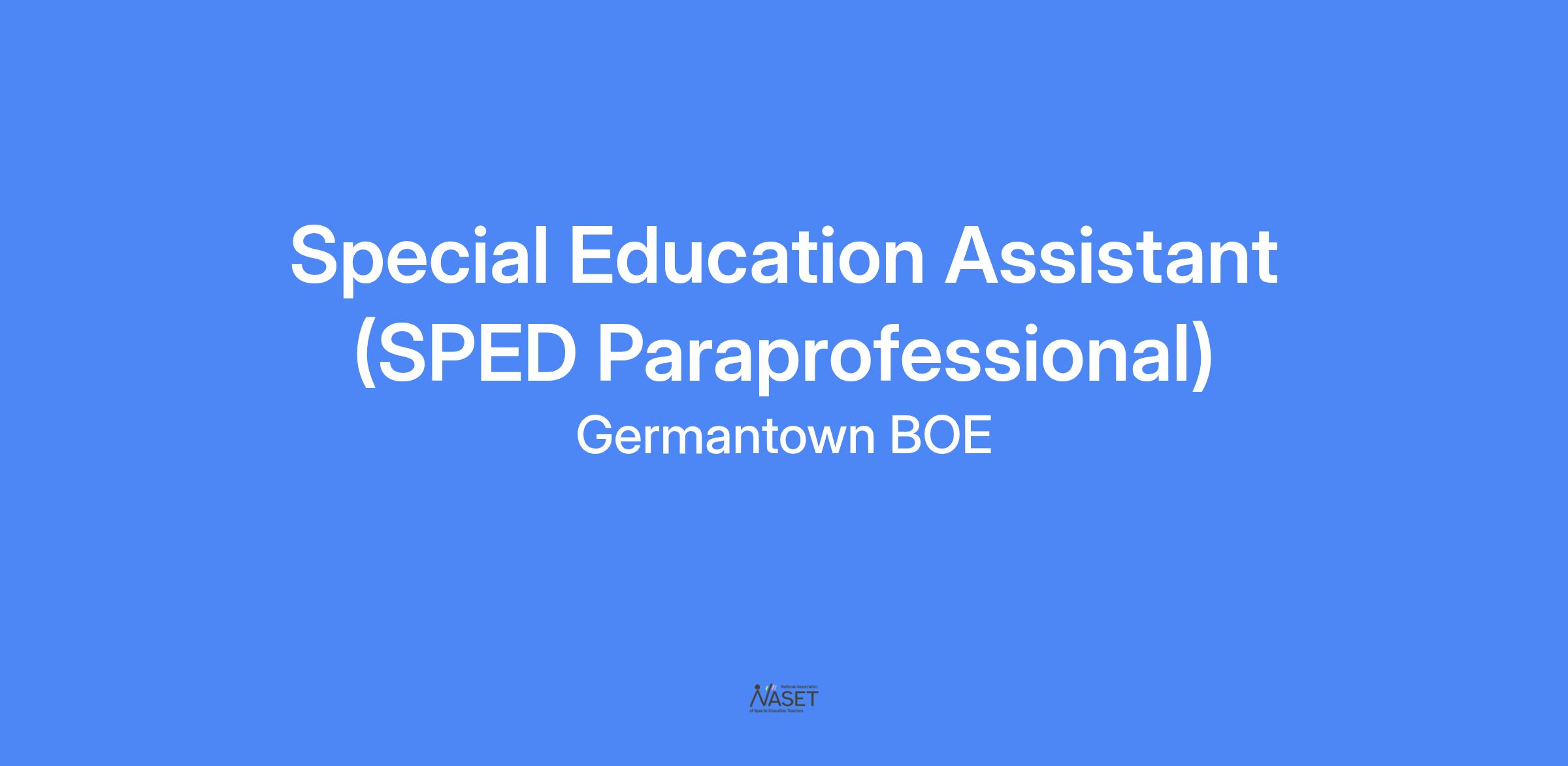 Job Objectives: Germantown Municipal School District’s Special Education Teacher Assistant staff members are expected to provide best instructional practices in ensuring that students have a quality educational experience evident by socio-emotional growth and academic achievement.