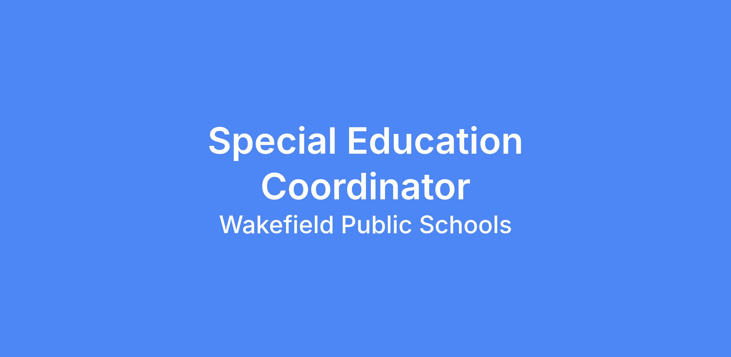Wakefield Public Schools seeks a highly qualified Elementary Special Education Coordinator to join our dedicated team. Wakefield has four elementary schools: two larger schools with approximately 450 students each and two smaller schools with approximately 220 students each.