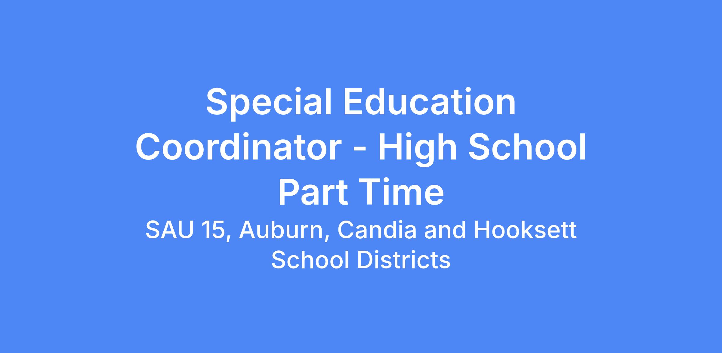 POSITION: Special Education Coordinator - High School Part time/ 3 days per week