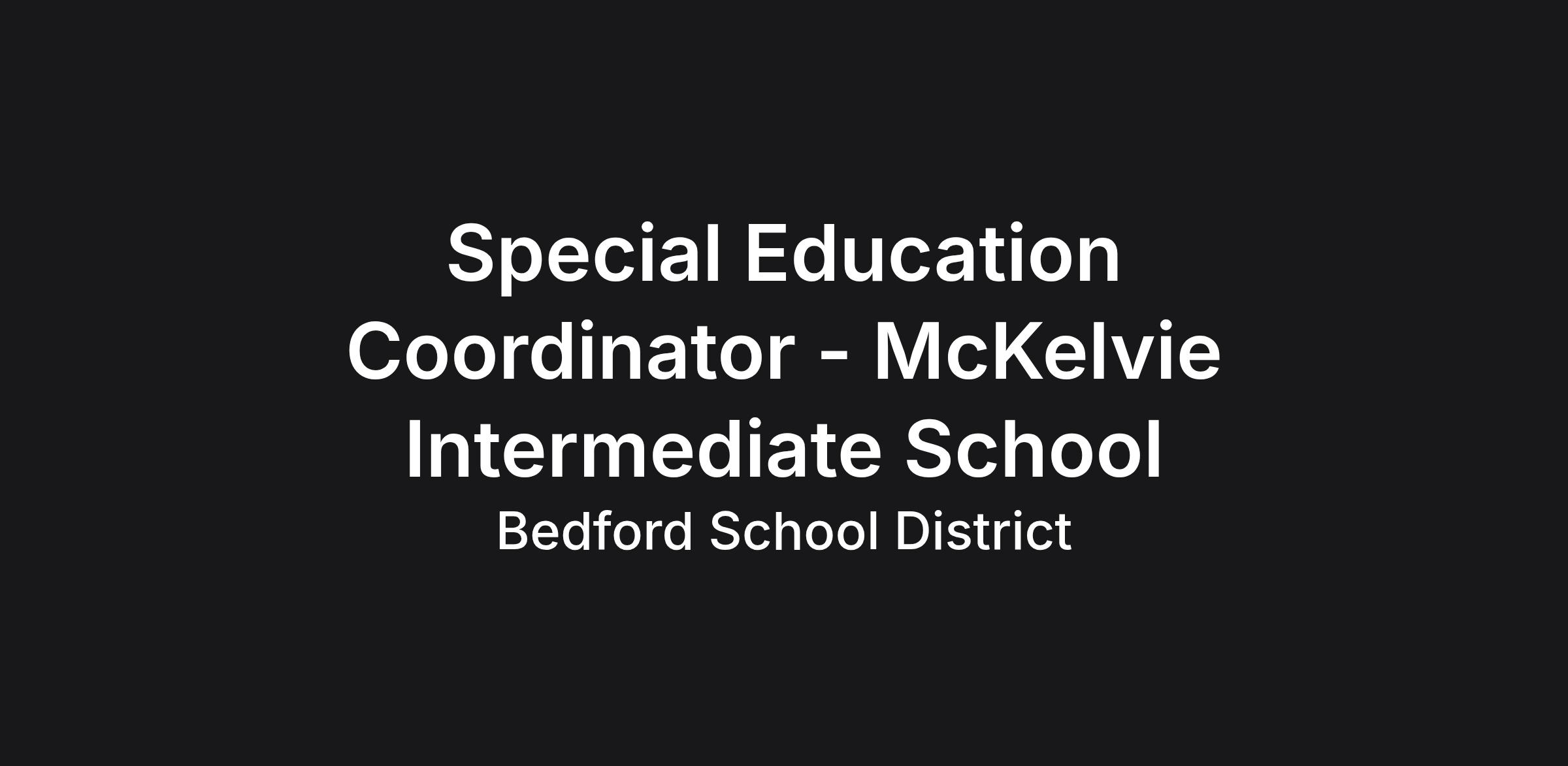 McKelvie Intermediate School is seeking an experienced individual to facilitate all aspects of the Special Education process. 210 day contract.