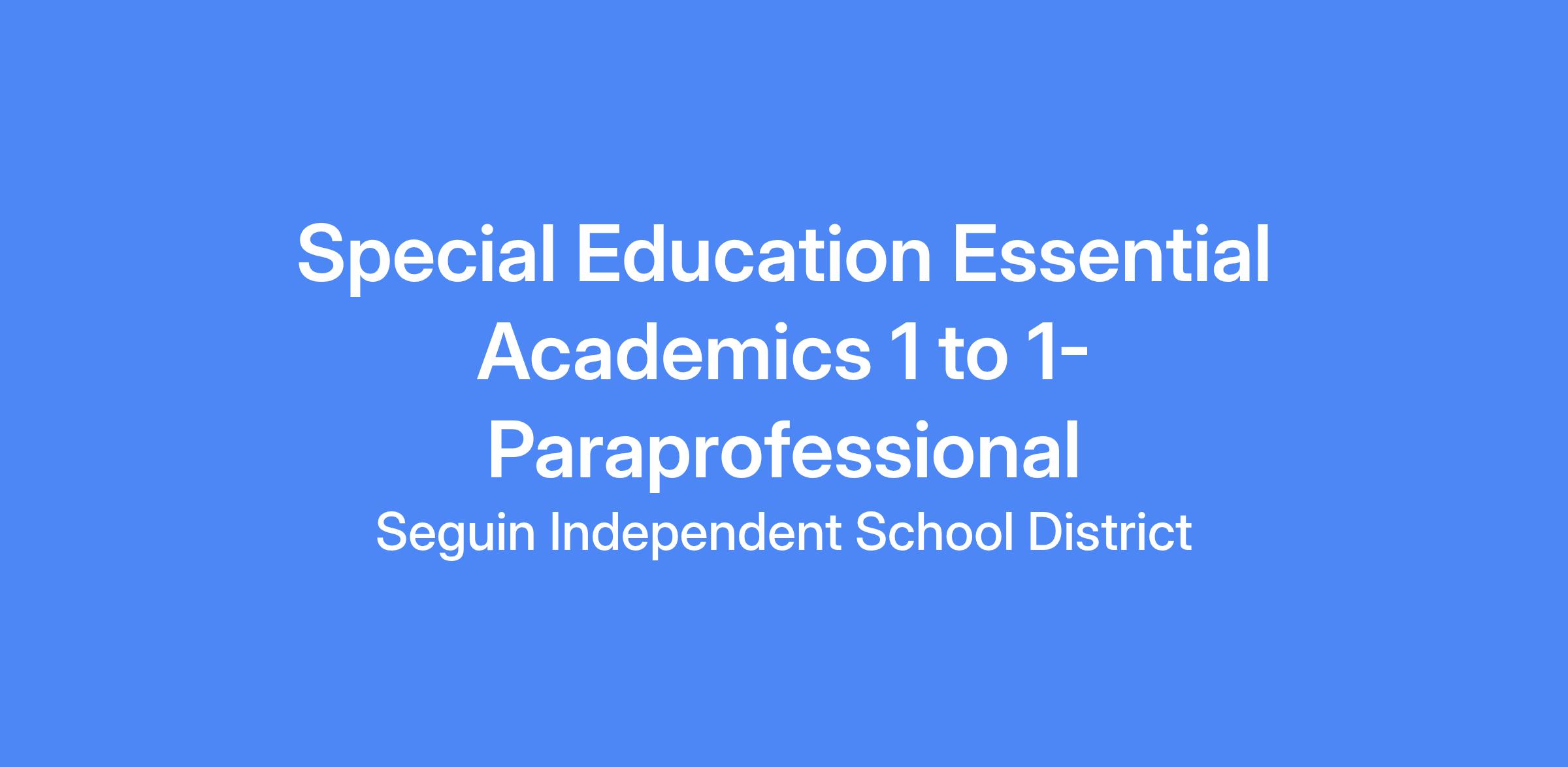 JOB TITLE: SPED- Essential Academics Paraprofessional WAGE/HOUR STATUS: Non-Exempt