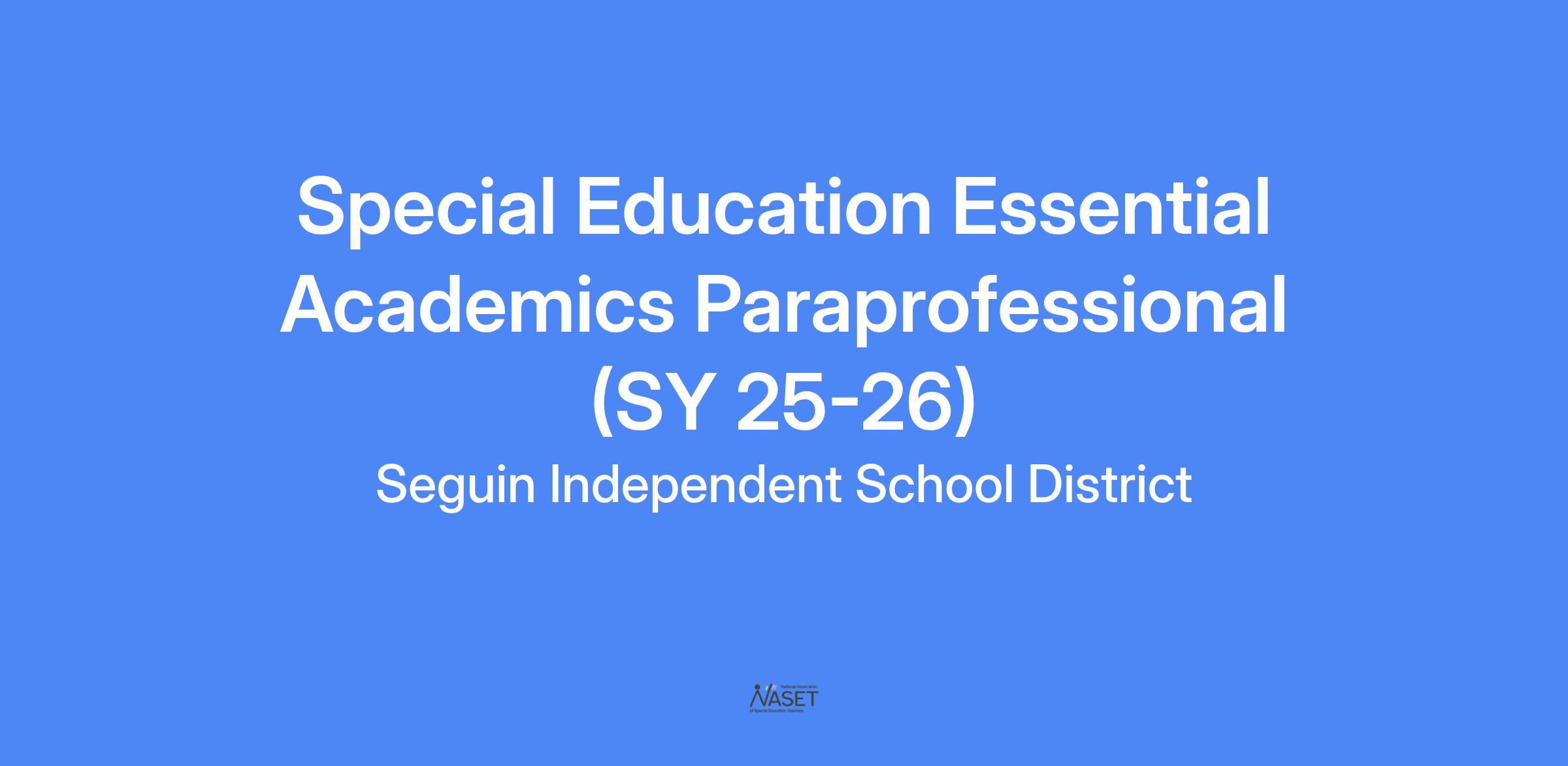 JOB TITLE: SPED- Essential Academics Paraprofessional WAGE/HOUR STATUS: Non-Exempt