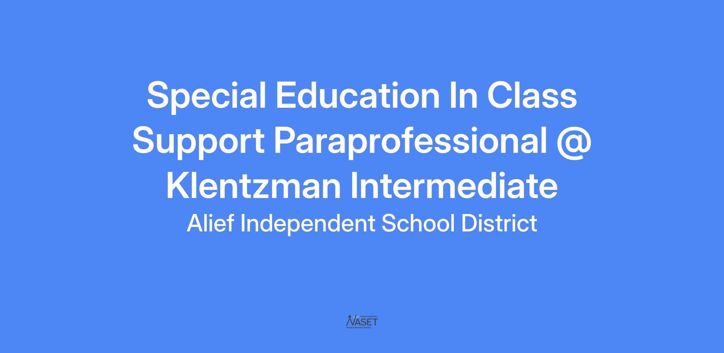 Special Education In Class Support Paraprofessional @ Klentzman Intermediate