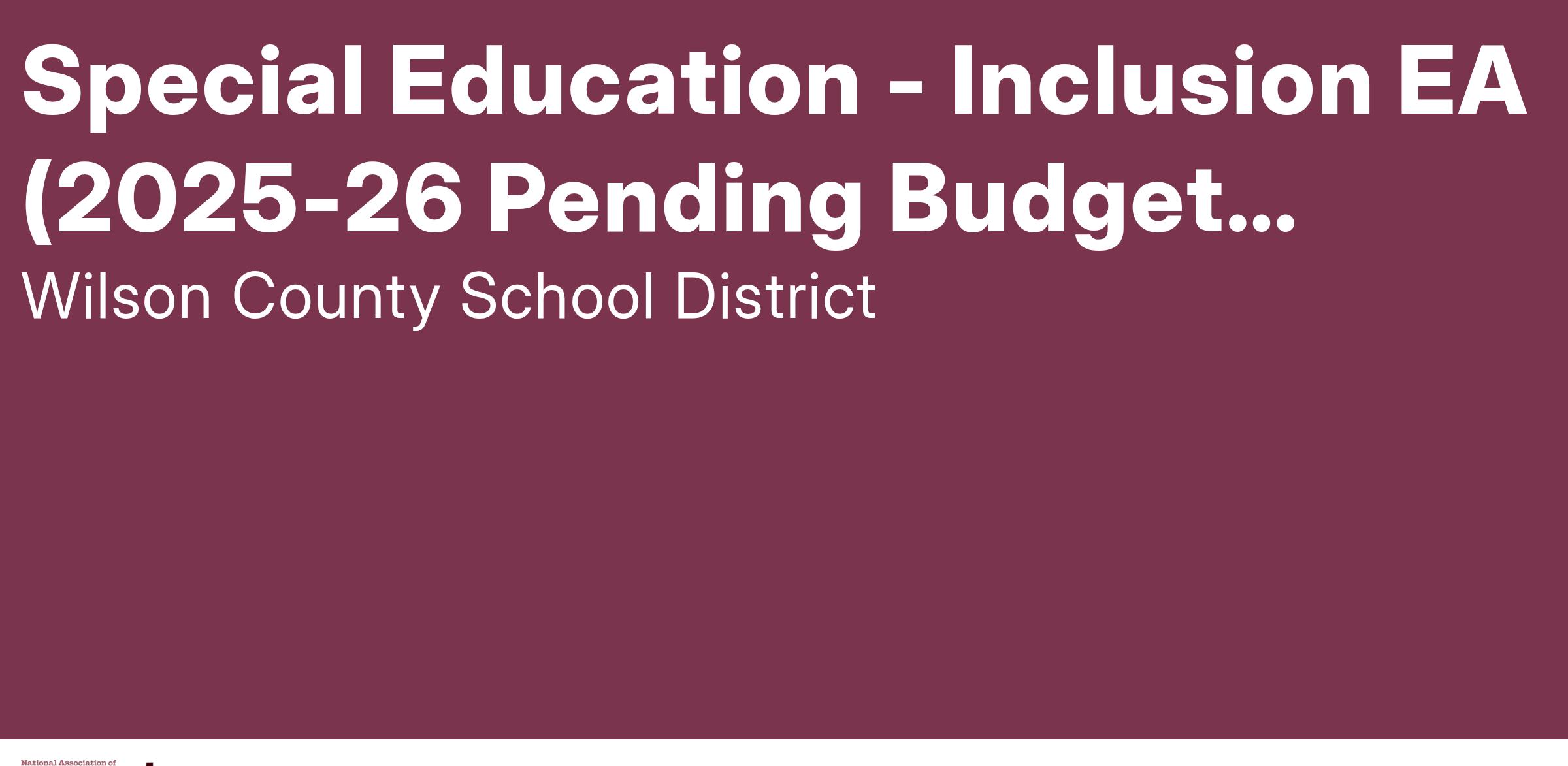 The successful candidate will work under the directive of the Special Ed teacher to which he/she is assigned and will follow all IEP goals and EA guidelines set forth by Wilson County Schools. Additional training may be required and will be provided, if necessary.