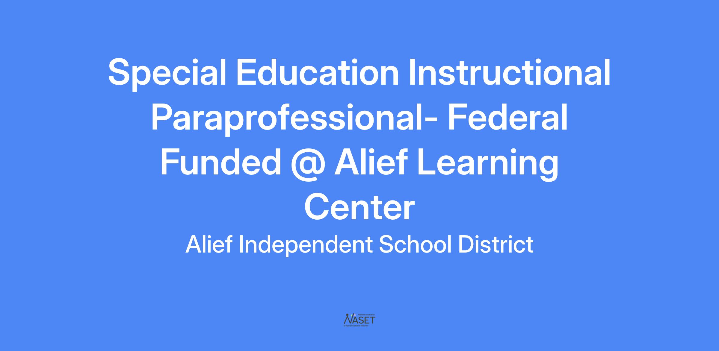Special Education Instructional Paraprofessional- Federal Funded @ Alief Learning Center