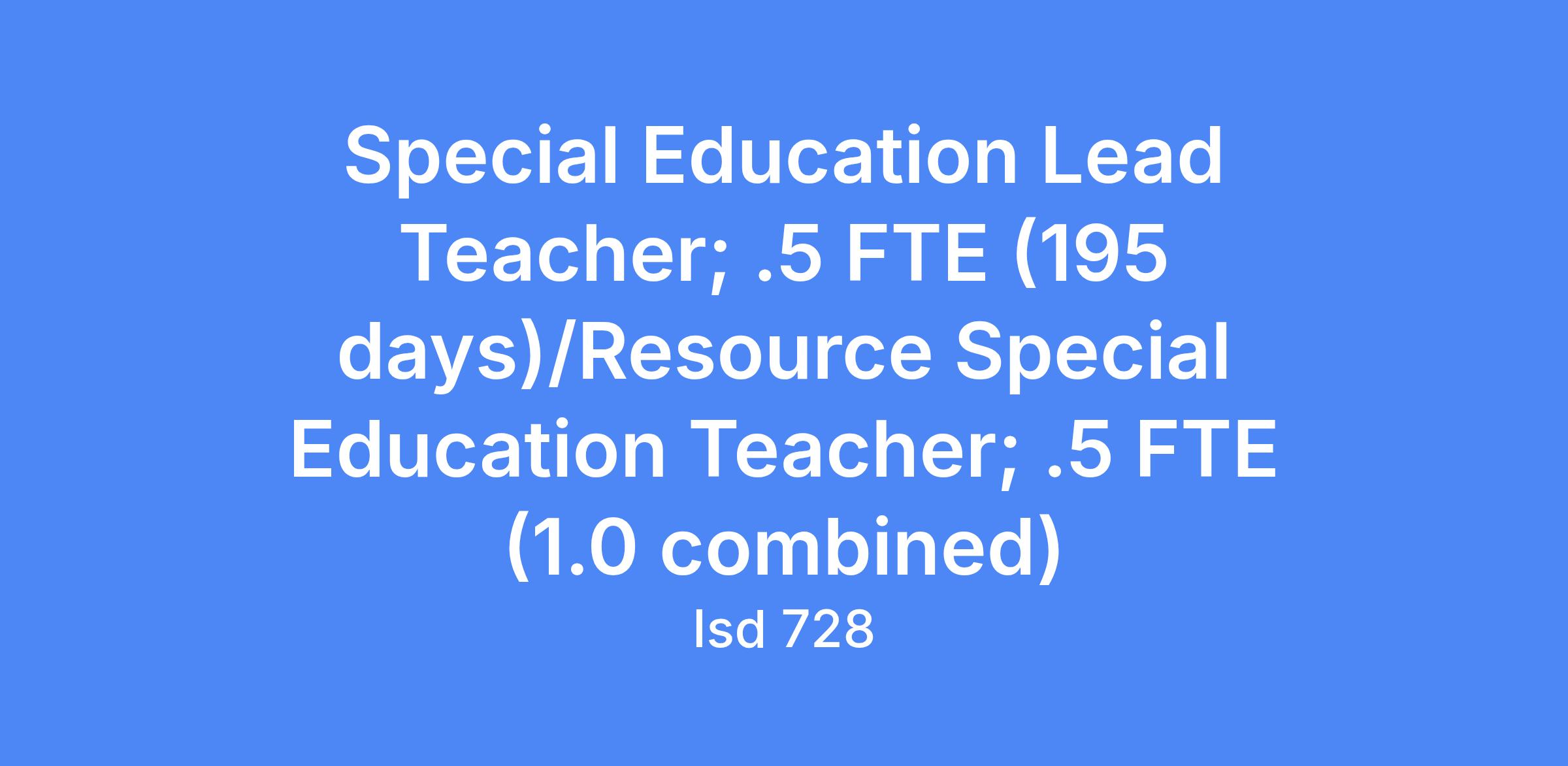 The Resource Special Education Teacher provides specialized instruction and support to students with disabilities in a resource room or inclusion setting. They collaborate with general education teachers, parents, and support staff to ensure students meet their individualized education program (IEP) goals and access the general curriculum effectively.