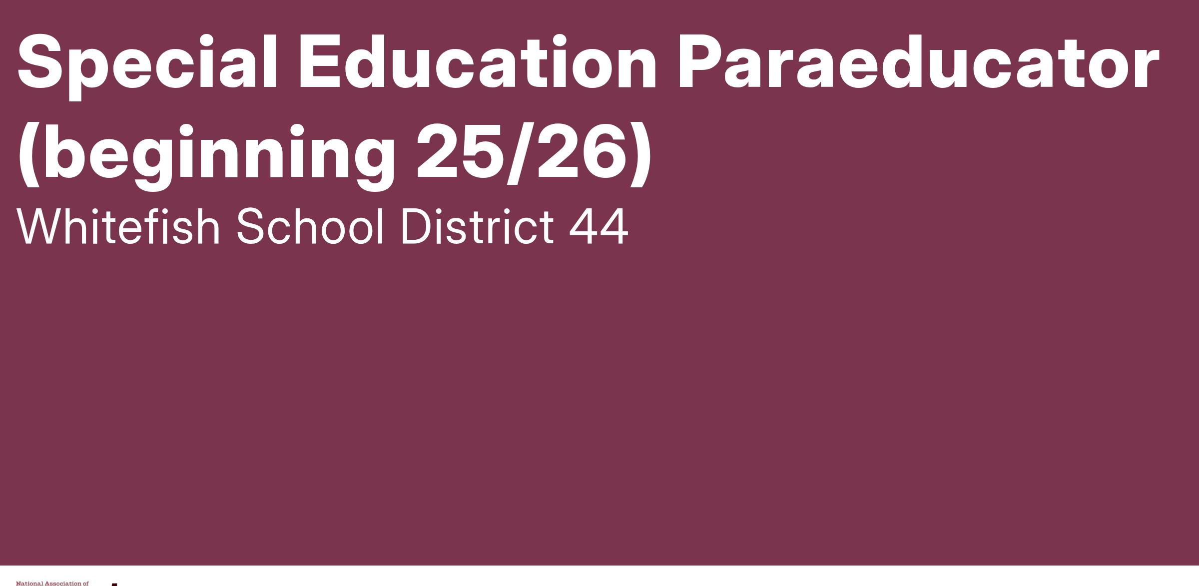 Whitefish School District seeks a Paraeducator (special education) at Whitefish High School to join one of the leading school districts in the state of Montana. With the support of our community, Whitefish School District creates an educational environment where each student can reach their academic potential, prepare for career opportunities and become engaged citizens.
