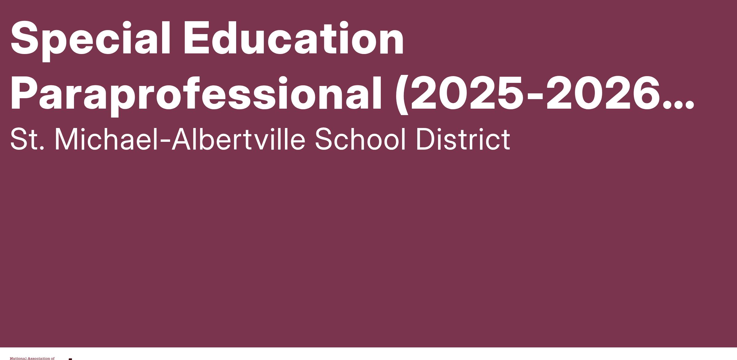 St. Michael-Albertville School District is committed to providing equal opportunity to all employees and applicants for employment in accordance with all applicable laws. STMA Schools does not discriminate against any employee or applicant on the basis of race, color, creed, religion, national origin, sex, marital status, status with regard to public assistance, disability, sexual orientation, age, veteran status, or status with regard to public assistance. If any employee or applicant needs assistance with any aspect of the application or benefits process, please contact us and alternative formats will be made available upon request.
