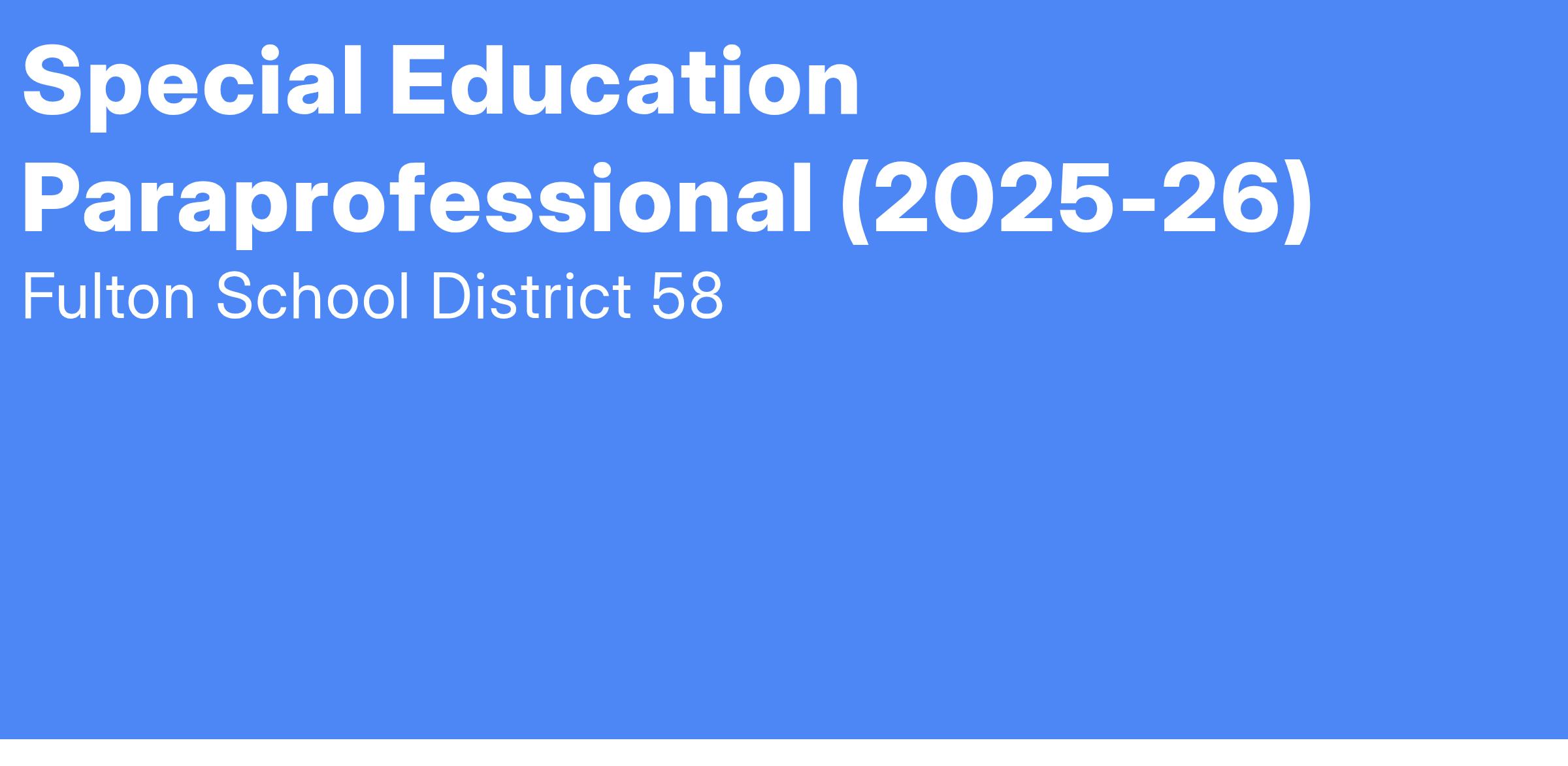 The purpose and utilization of job descriptions in Fulton 58 Public Schools are to ensure the essential functions of each position are articulated in order to create a clear understanding of job expectations for the incumbent while also providing a framework through which the recruiting, hiring, and retaining of employees may be enhanced.