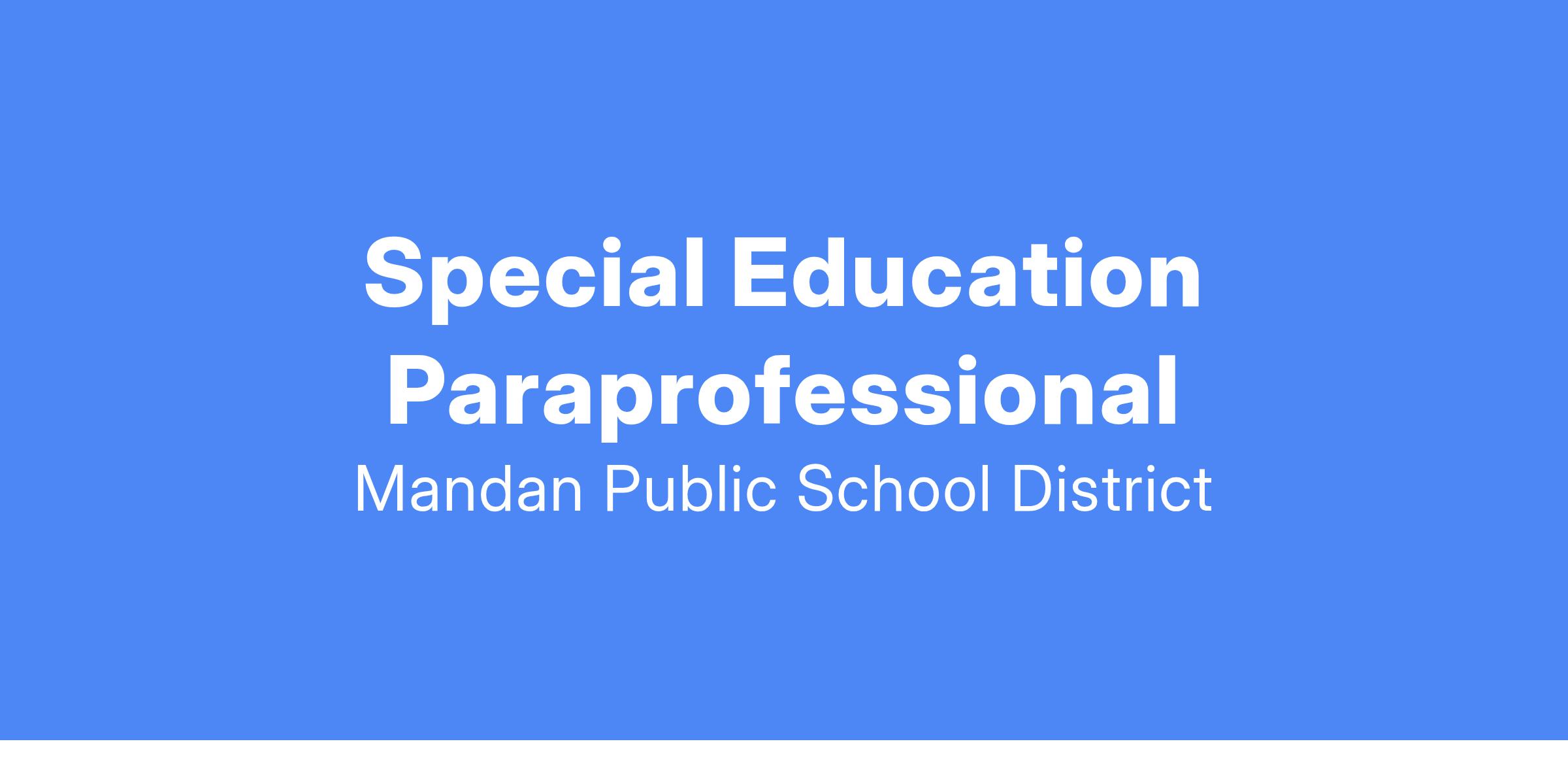 Mandan Public Schools is currently seeking to hire a Special Education Paraprofessionals for the 2025-2026 school year. This position is full time and follows the school calendar. Full benefit package is included for employees working 30 or more hours/week.