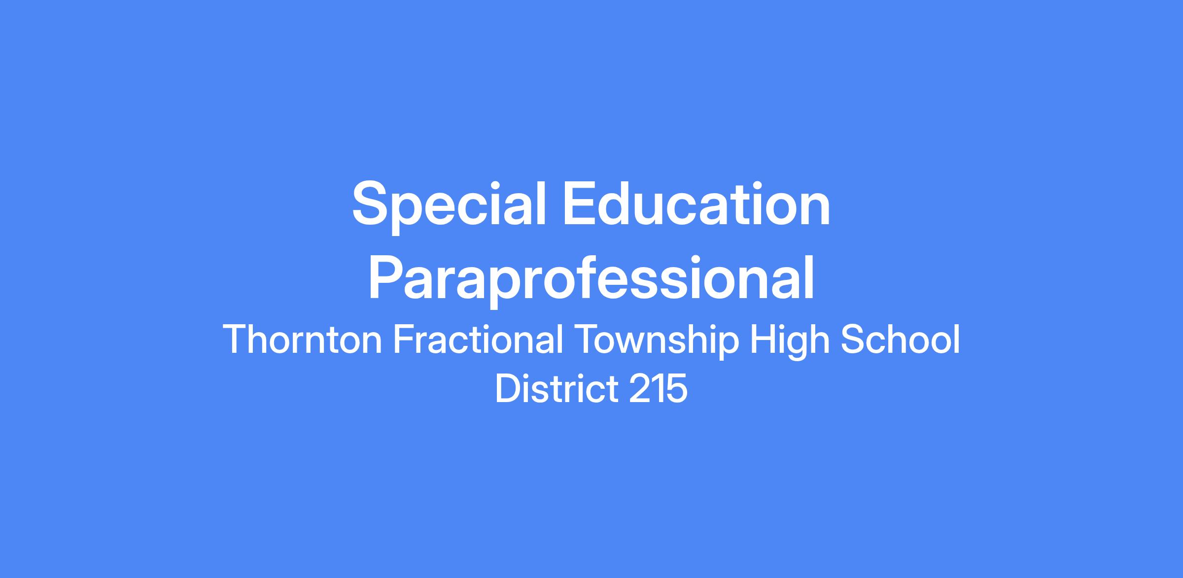Position Type: Support Staff/Paraprofessional (Special Education)